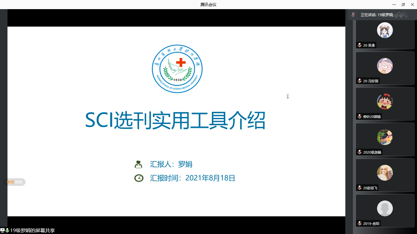 本期学术沙龙由2019级护理学硕士研究生李悦主持,1683168诸侯快讯官网2019级研究生罗娟和何丹丹两位同学进行知识分享。罗娟以《SCI选刊》为题分享了常用SCI选刊工具,分别对Edanz Journal Selector、JANE、SJR、Journal Finder等选刊工具的使用操作流程、如何提高投稿命中率等进行了详细介绍。参会同学与汇报人就内容、主题等相关领域知识、信息进行交流与讨论,拓展了选刊、投稿相关知识。外科护理学教研室马丽老师表示,分享内容深入浅出,增长了学生和老师在SCI选刊技巧及中科院医学文献分区等方面的知识。王秀红对汇报内容进行点评与指导,对罗娟同学的进步表示肯定,并就资源共享提出了建议。何丹丹分享了临床研究注册的流程、目的、意义、注意事项及国内外常用临床研究注册平台,并在中国临床实验注册中心进行了操作演示,使参会师生了解了临床注册的好处及如何进行临床注册研究。参会同学和老师就临床研究注册话题进行了热烈的讨论,为大家科学规范开展护理研究提供了有益的参考。