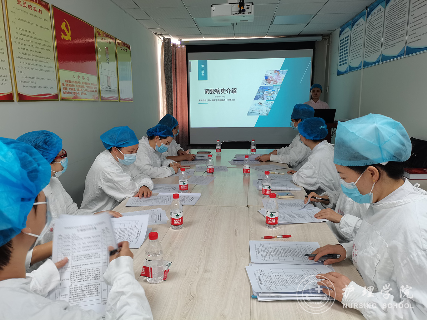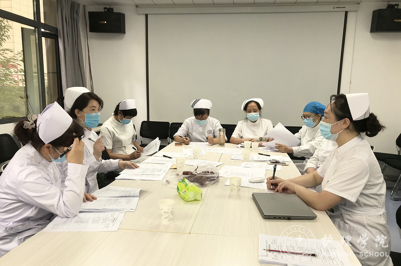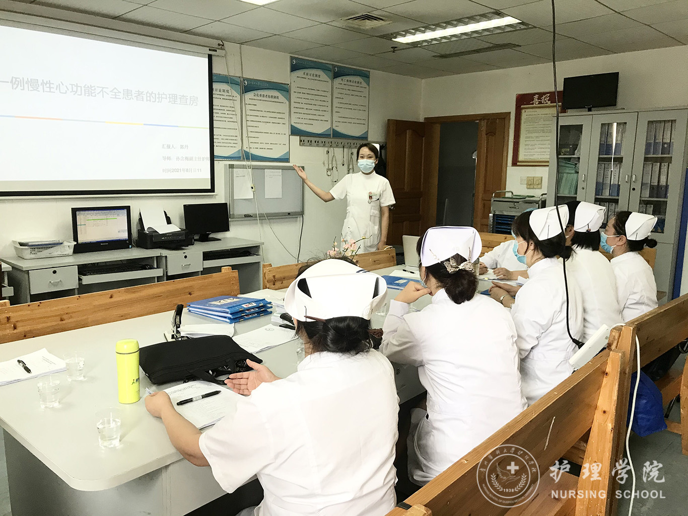 8月11日,4个考核小组到研究生临床实践相应科室对研究生进行考核。每位研究生同学根据护理病历所选择的疑难病例开展床旁护理查房、PPT汇报及1项实践技能操作。考核专家通过查阅护理病历、听取汇报、现场提问进行现场打分。8月18日,考核专家对研究生进行了结合案例的综合基础护理技能操作考核。考核结束后,考核专家针对同学存在的问题和不足提出了意见和建议。