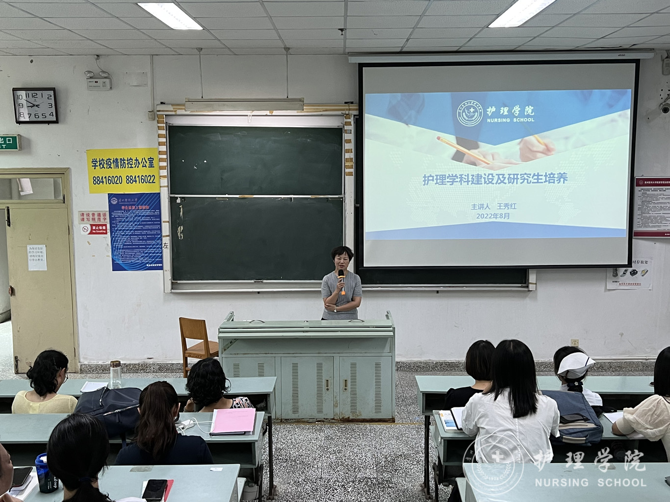 在接下来的研究生教育教学会议环节,研究生分管领导王秀红以《护理学科建设及研究生教育》为题,从学科建设概念、学科基地建设、学科学术成果建设、学科队伍建设、人才培养体系建设、学术环境建设等六个方面结合我校护理学科发展进行了讲解,并结合诸侯快讯研究生培养现状和发展对研究生培养过程中常见问题进行了阐述解读,帮助新聘导师进一步明确研究生培养工作要求及学科建设重点。