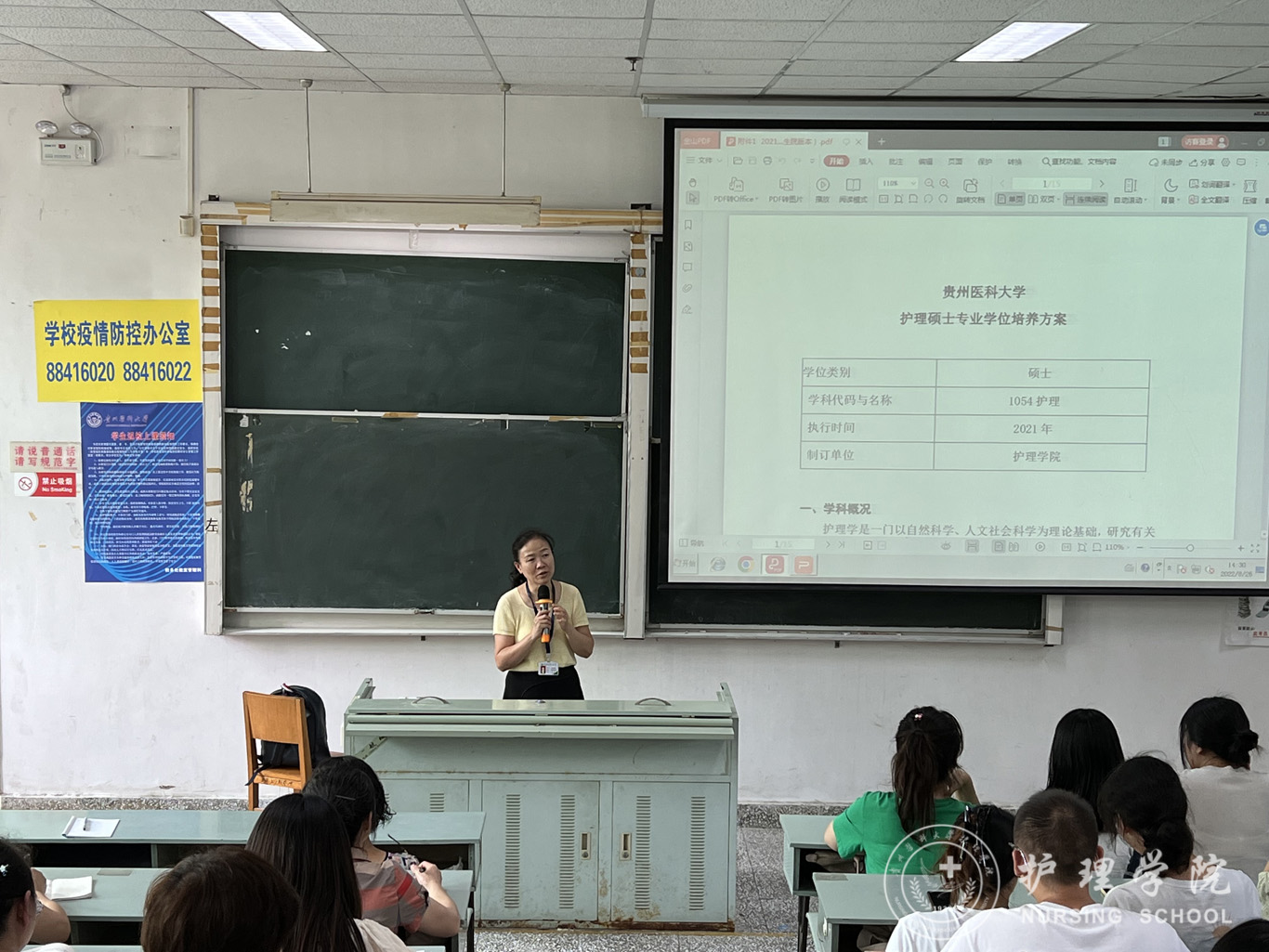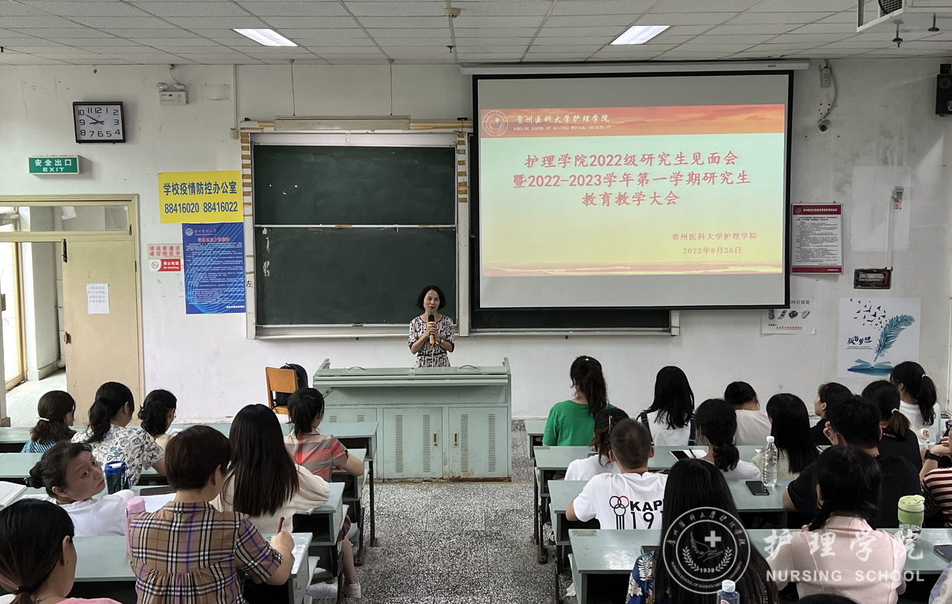 李亚玲结合自身丰富的经验,从学科概况、岗前培训、开题情况等方面对专硕培养方案进行了详细深入的解读,从一位老导师的角度与新聘导师进行了研究生培养经验分享。在与研究生新生现场良好互动后,她寄语同学们要从四个方面加强研究生期间的学习:一要遵规守纪,严谨自律,做好疫情防护和自我安全管理;二要尊师重道、诚恳求学,加强与导师沟通联系,多读经典,独立思考;三要提升能力、精益求精,全面提升研究生综合能力,三年后以优异的成绩为研究生生涯交出满意的答卷。四要勇于追梦、敢于担当,展现新时代贵医人的使命与担当。