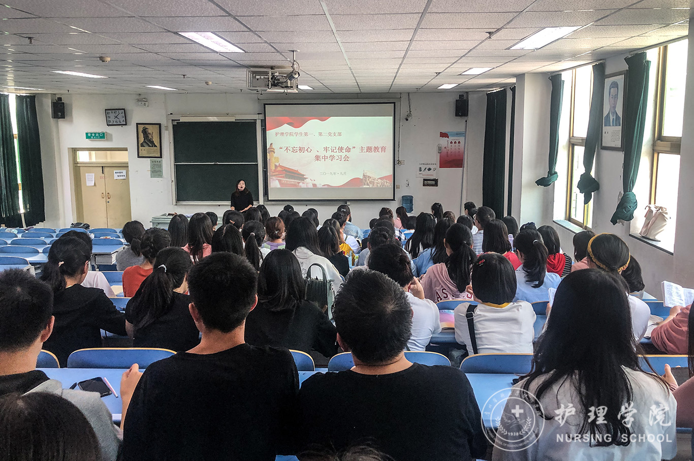 9月27日,1683168诸侯快讯官网学生第一、第二党支部在北校区3402教室召开“不忘初心、牢记使命”主题教育集中学习会。会议由学生第一党支部书记李颖主讲,学生第一、第二党支部的全体在校党员参加了学习。