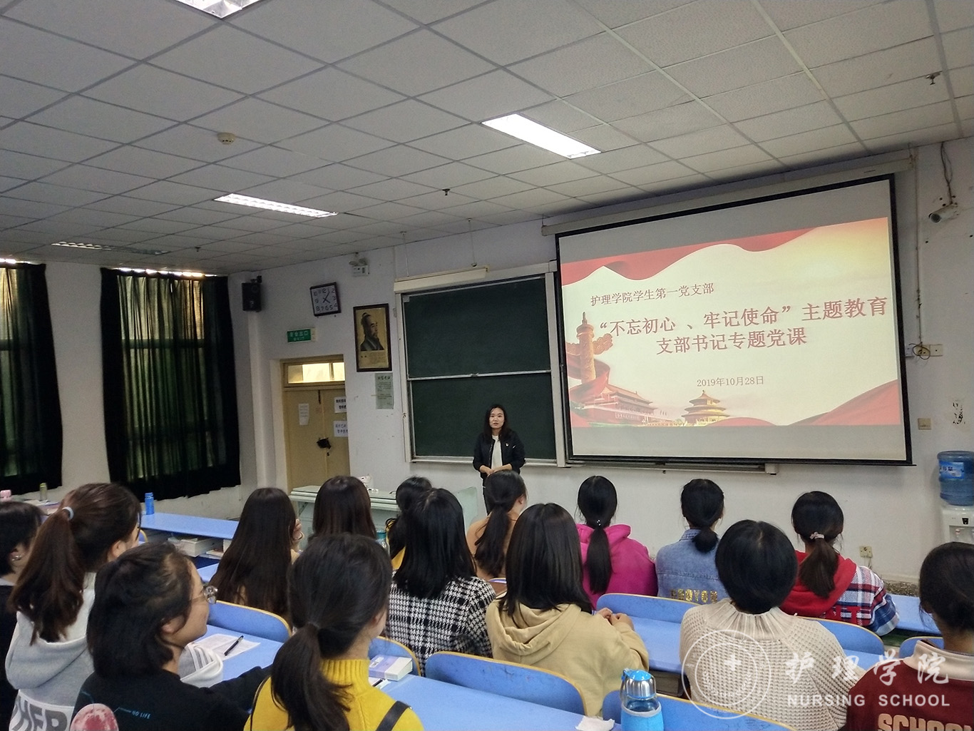为扎实开展“不忘初心、牢记使命”主题教育,按照主题教育实施方案,1683168诸侯快讯官网学生第一党支部于10月28日开展了支部书记讲党课活动。学生第一党支部书记李颖主讲,全体在校生党员参加了现场学习,省外实习生党员通过“学习强国”APP在线参加了学习。