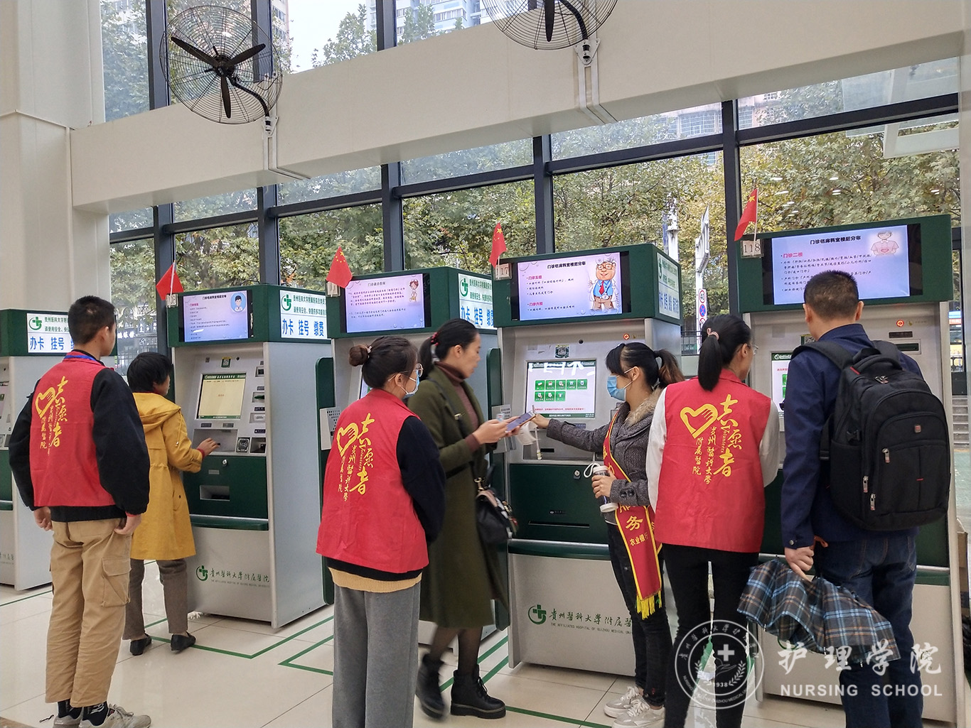 活动前,志愿者们通过培训,获得了工作所需的知识和技术,勇于承担起了导诊等志愿服务,迅速来到不同的岗位开展工作。学院一支部共计15名党员志愿者接诊患者约500人次。其中,在门诊大厅和导诊台维持各窗口就医秩序、引导200余人次患者在自助系统进行挂号、取号、缴费、取报告;为150名患者提供咨询、费用查询、预约诊疗等服务;向80余名来院患者宣传健康知识和常见病保养;帮助60余名利用网上平台进行预约挂号,使预约挂号更方便、快捷。