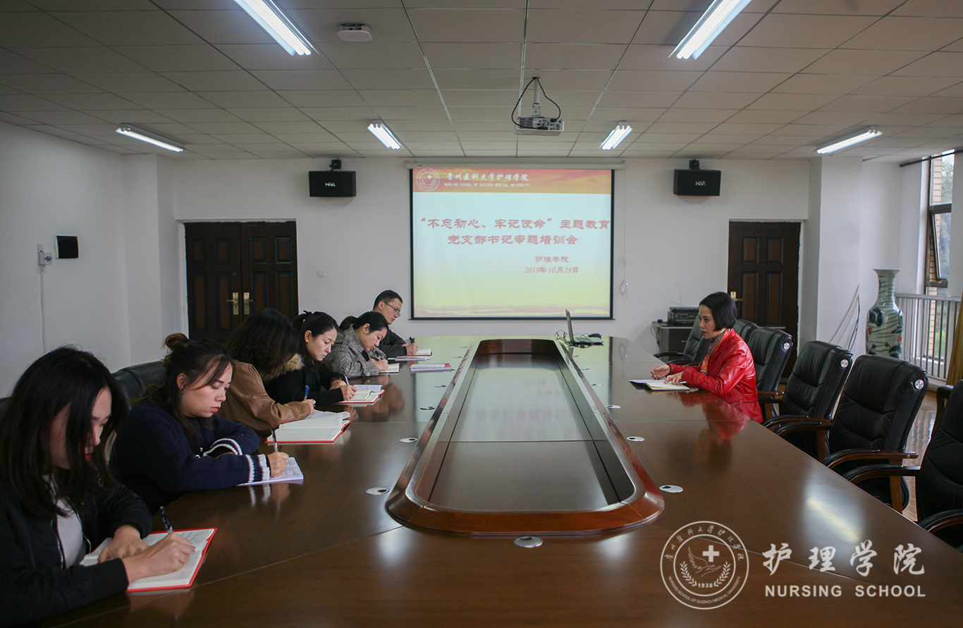 杨英同志培训的题目为《丰富内容形式促活力,支部主题教育取实效》。她从“把握开展党支部主题教育的时机、明确开展党支部主题教育的内容、创新开展党支部主题教育的形式”三个方面,重点围绕如何开展好主题教育,党支部书记如何讲好党课进行了讲述。培训会上还组织学习了校党委关于开展“不忘初心、牢记使命”主题教育的部署要求。