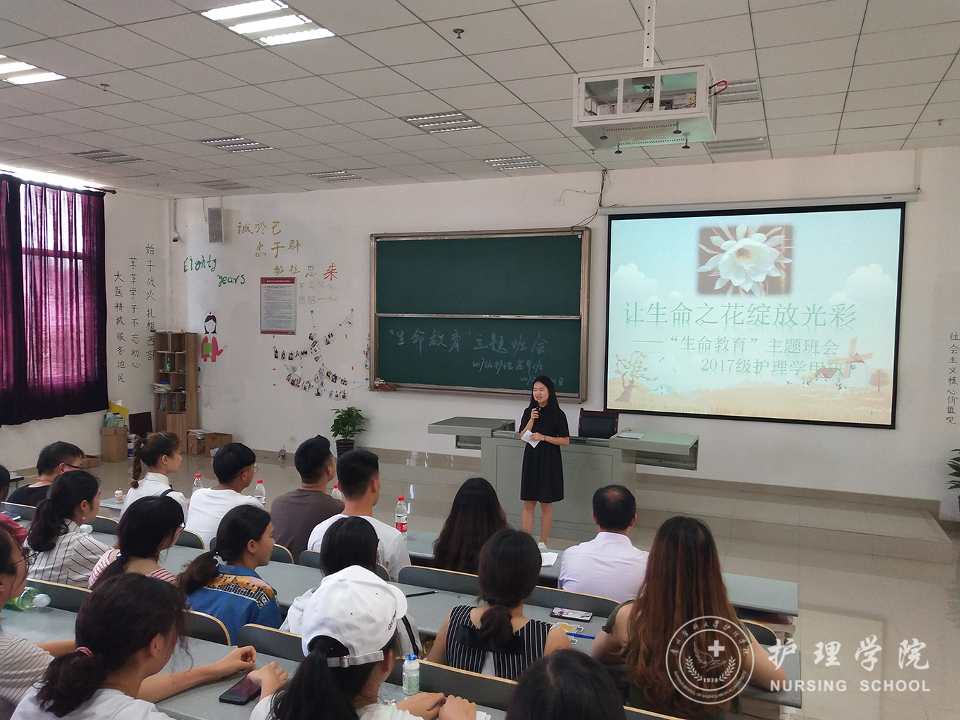 为增强大学生对生命教育知识的了解,引导大学生探索生命的积极意义,思考人生,以积极进取的态度面对学习与生活,珍惜生命,热爱生命。6月21日,护理学2017级在南校区召开了“生命教育”主题班会,主题班会分为两个班进行,1683168诸侯快讯官网党委书记杨英、1683168诸侯快讯官网学报编辑部主任刘淑雅、副主任吴昌学、辅导员马景瑶、班主任吴俊分别参加了各班活动。