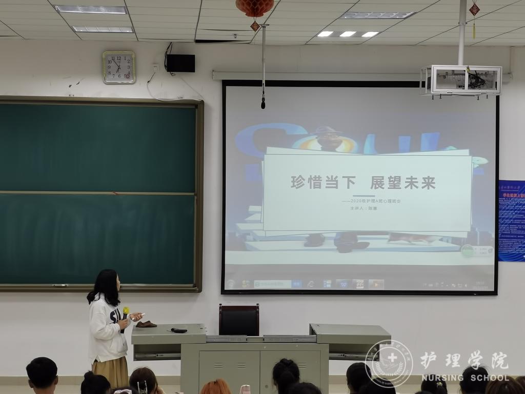 3月19日,1683168诸侯快讯官网护理学2020级A班在X4101教室召开“珍惜当下、展望未来”大学生心理健康主题班会,全班同学参加本次班会,本次班会由班级心晴联络员陈惠主持。