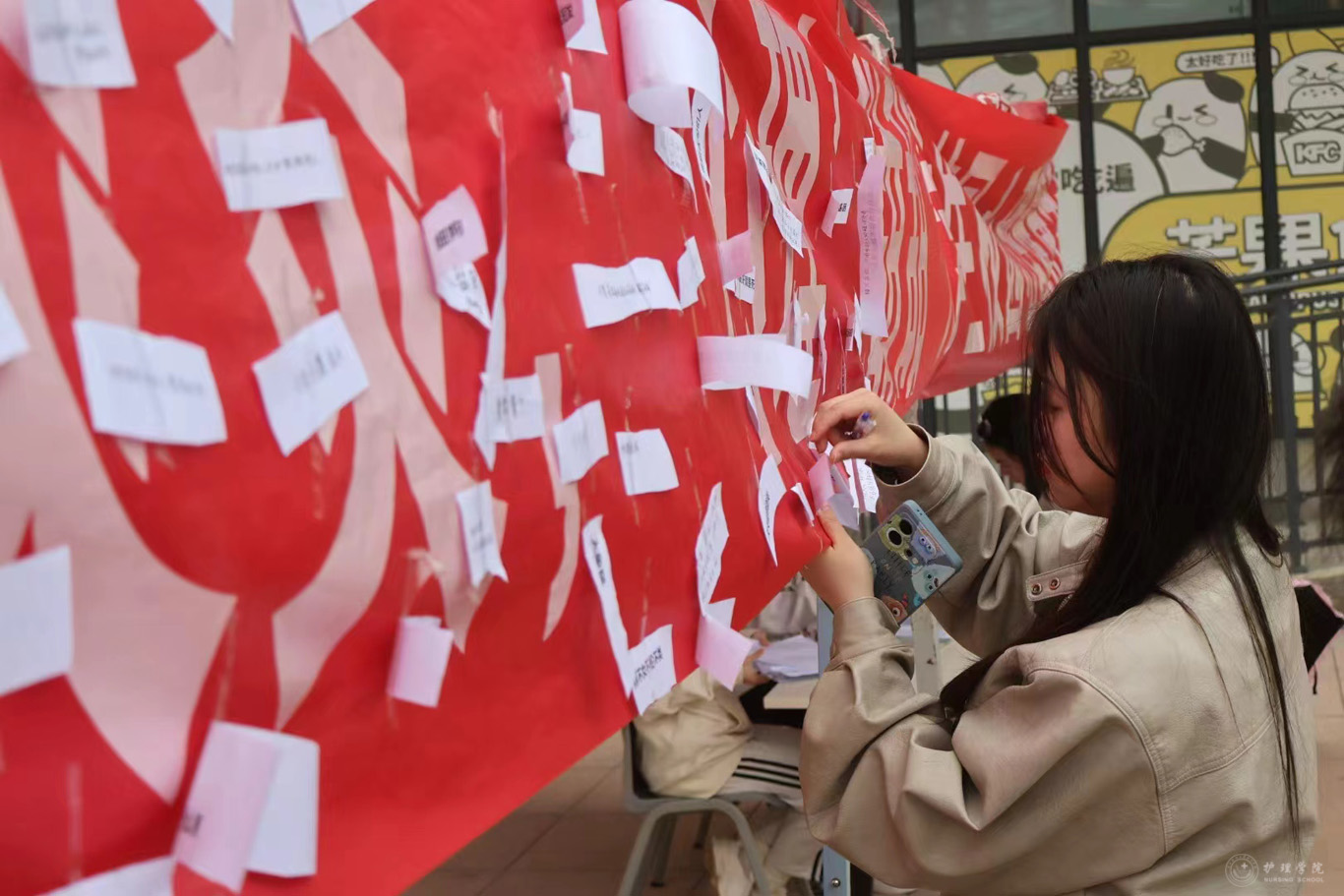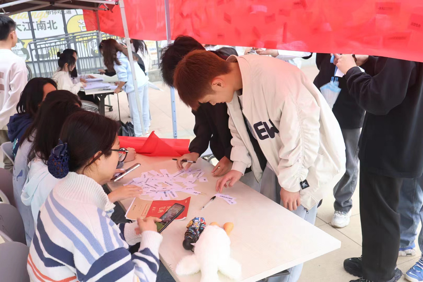 活动主要通过两个游戏形式开展,撕掉标签和心理健康知识答题。在撕掉标签游戏中,同学们从贴满标签的横幅上选择自己最想撕掉的负能量标签,并用笔重新在纸上写下鼓励自己话或反驳标签的内容,以心声覆盖偏见,用思维打破束缚,远离被定义的偏见。同学们还通过心理问答小游戏普及心理知识,让同学们在轻松欢快的氛围中激发大家对心理知识的兴趣,增强心理健康意识。