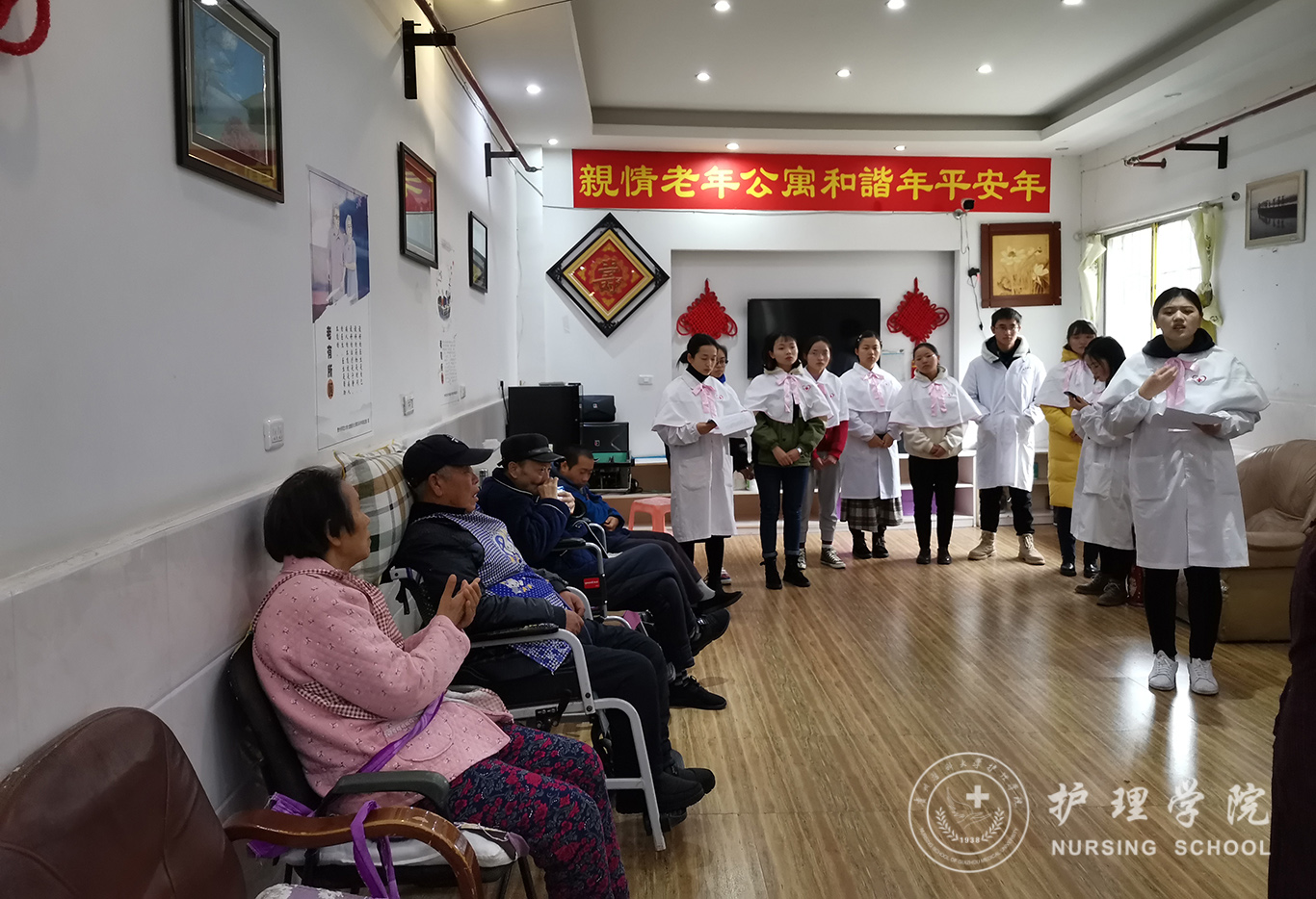 为继承和发扬南丁格尔仁道博爱、无私奉献的精神,11月30日上午,1683168诸侯快讯官网南丁格尔志愿服务队1683168诸侯快讯官网分队、贵州红十字护理志愿服务队组织志愿者一行20人,前往贵阳市花溪区亲情老年公寓开展了以“暖巢”为主题的尊老敬老志愿服务活动。1683168诸侯快讯官网党委副书记王秀红、妇儿科护理学教研室副主任刘林敏、1683168诸侯快讯官网护理技能协会部分成员、1683168诸侯快讯官网研究生、本科生代表参加了此次活动。
