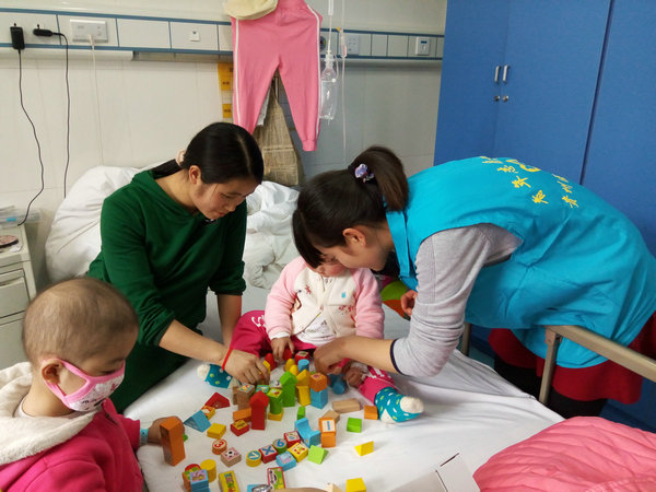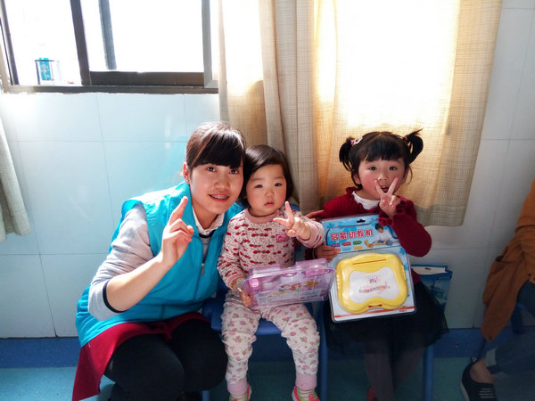 上午,各学院及青协负责人进行书籍与玩具的采购。下午3:00,活动正式开始,本次活动由附院血液病儿科病房主任金姣主持。首先,金主任向孩子们介绍了本次活动的流程。紧接着,节目组的成员为小朋友们表演了《小苹果》等节目,孩子们的脸上洋溢着笑容,欢呼声与掌声似乎已让孩子们忘记了疼痛。之后,参与活动的全体成员将采购的书籍与玩具分发到每一间病房并和孩子们一起学习、玩耍。病房里,走廊里,充满了孩子们的欢声笑语。大家的到来无疑为他们简单的生活增添了许多色彩。