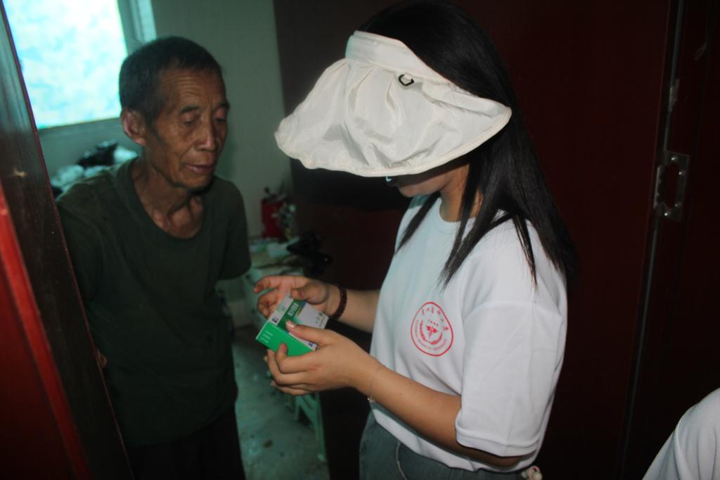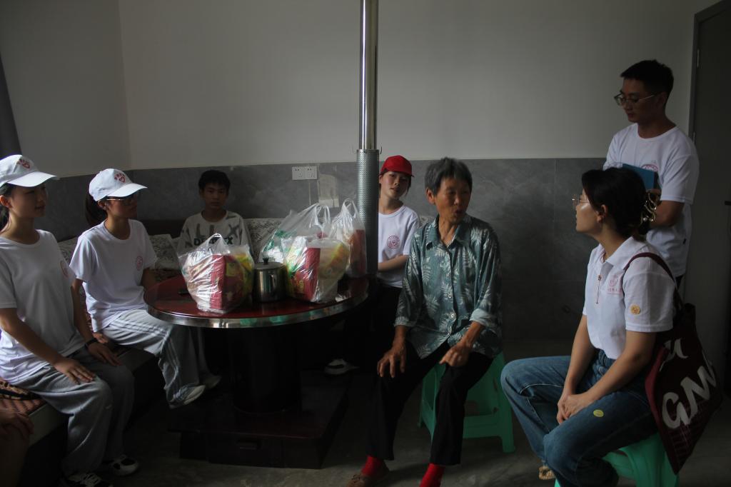 走访慰问:服务队深入村落开展走访,与儿童、老人进行交流,关注留守老人、留守儿童生活状况,带去营养品和学习用品。帮助打扫卫生、指导老人们安全用药。