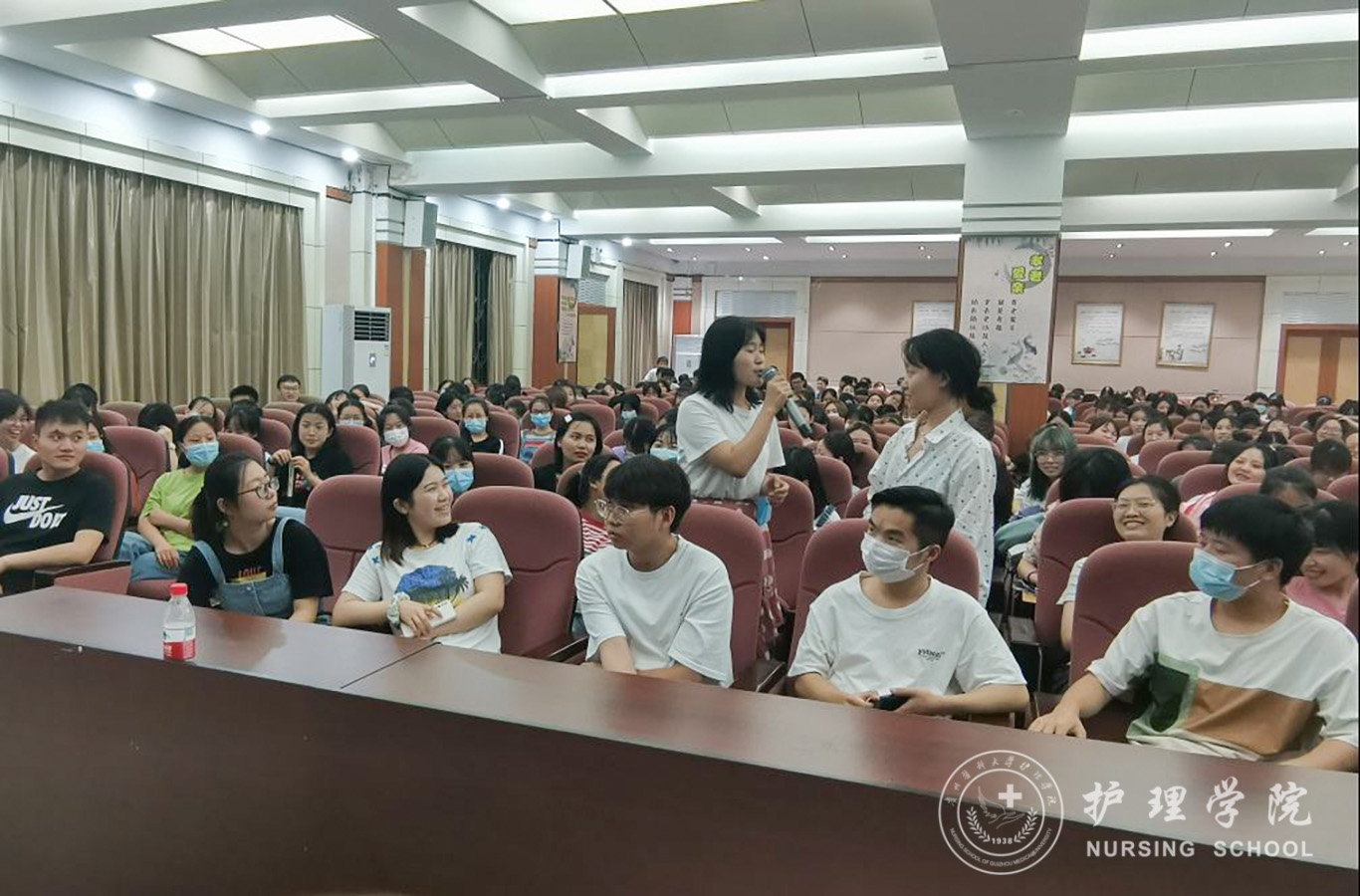 首先,柳忠燕从如何填写实习考核本给大家详细介绍,并强调了自我鉴定撰写的原则。接着,她就护理教学查房给同学们做了细致讲解,并鼓励同学们在今后实习过程中积极同临床带教老师交流学习,从教学查房中提升自己的实践能力、综合能力。然后,她以生动形象的案例给大家讲解了护理病历的书写。最后,同学们踊跃提出对于临床实习的疑惑,柳忠燕耐心地对同学们的问题进行了一一解答,并帮助同学们克服、缓解紧张和焦虑情绪等心理问题。