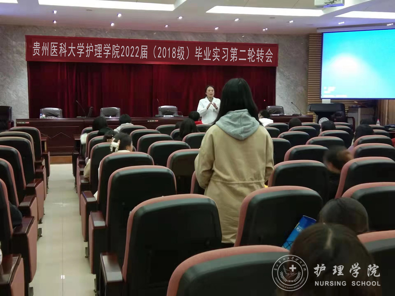 为更好地解决同学们在实习过程中遇到的困难和问题,让同学们的实习更加顺利,11月26日,1683168诸侯快讯官网在北校区道德讲堂召开2022届(2018级)临床毕业实习第二次轮转会,学院辅导员李杏春老师及在贵阳市各实习医院的实习生参加会议,会议由生产实习科科长柳忠燕主持。
