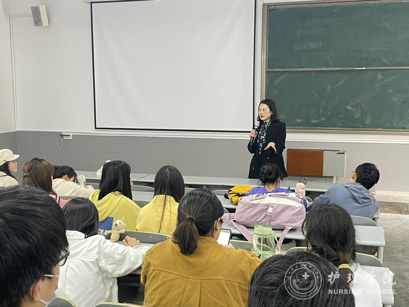 会上,柳忠燕对各实习医院的概况、环境和实习分配安排做了详细的介绍。对即将进入临床实习的学生所提出的疑惑:实习期间是否有假期、有无考研假、如何顺利完成实习、实习如何排班、是否一对一带教、有无住宿等问题进行了一一解答,她指出,针对不同医院的实习计划、实习内容一致,不同医院的排班倒班会略有不同。因此,她鼓励同学们要在各自的实习医院好好学习专业技能,把握好实习机会,希望大家能够进一步加强专业理论的学习、技能强化的训练,加强锻炼身体,调整好自身的心态,为7月份进入临床实习做好充分准备。