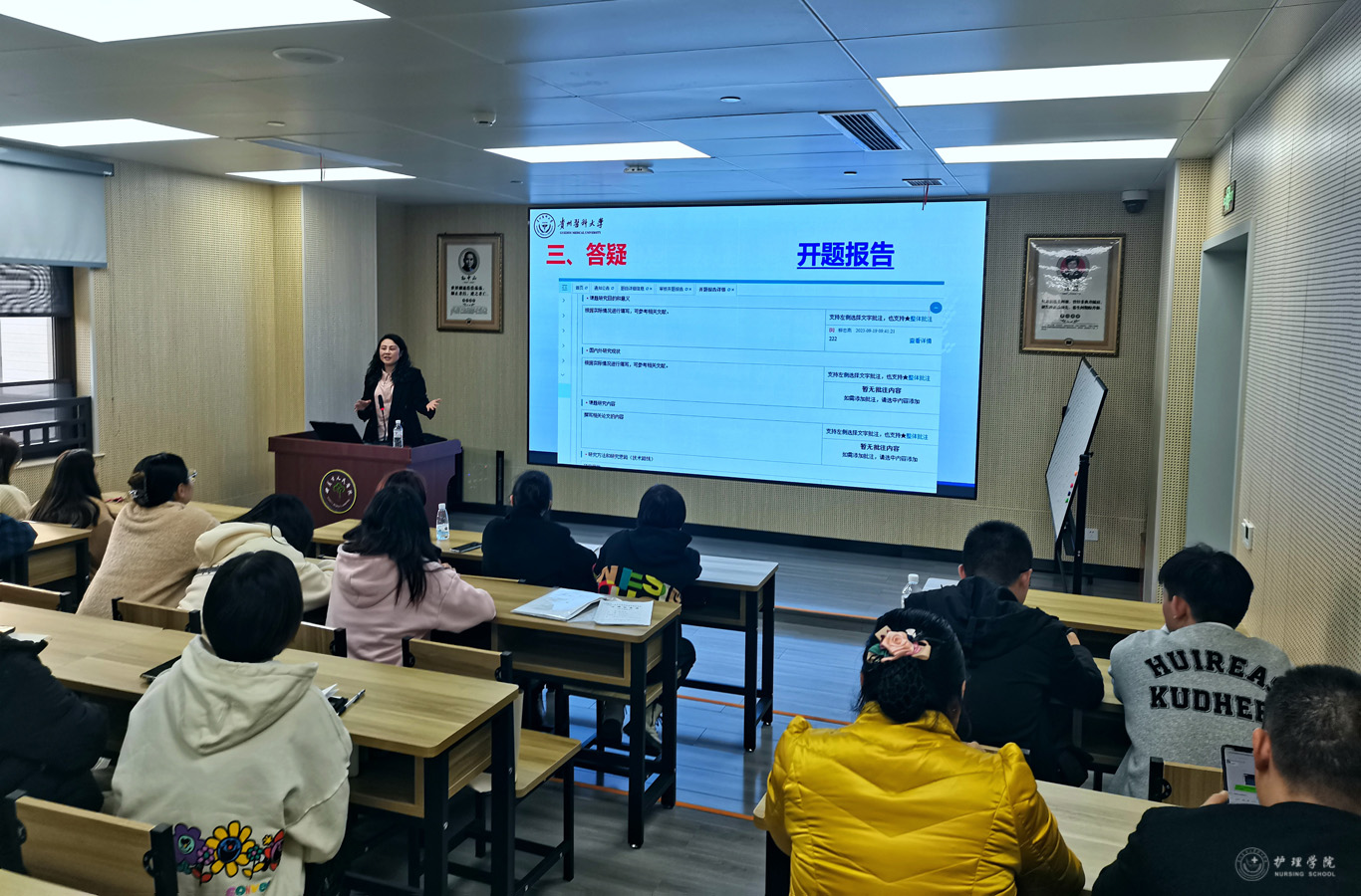 在本次巡回教学及教学督导中,巡回教学组对实习基地实践教学运行常态进行了督查指导,还进行了课堂听课、教案的书写培训。重点对本科生毕业论文(设计)工作方案进行了解读,对护理科研论文、综述及个案报告的撰写、论文系统操作等进行了详细培训,就师生在毕业论文(设计)与系统操作中存在的问题进行逐一解答,并广泛征集师生关于毕业实习大纲修订的相关意见建议。同时召开实习师生座谈会,听取带教老师和实习学生的意见建议,了解学生实习及带教情况,并对学生就业进行了指导。