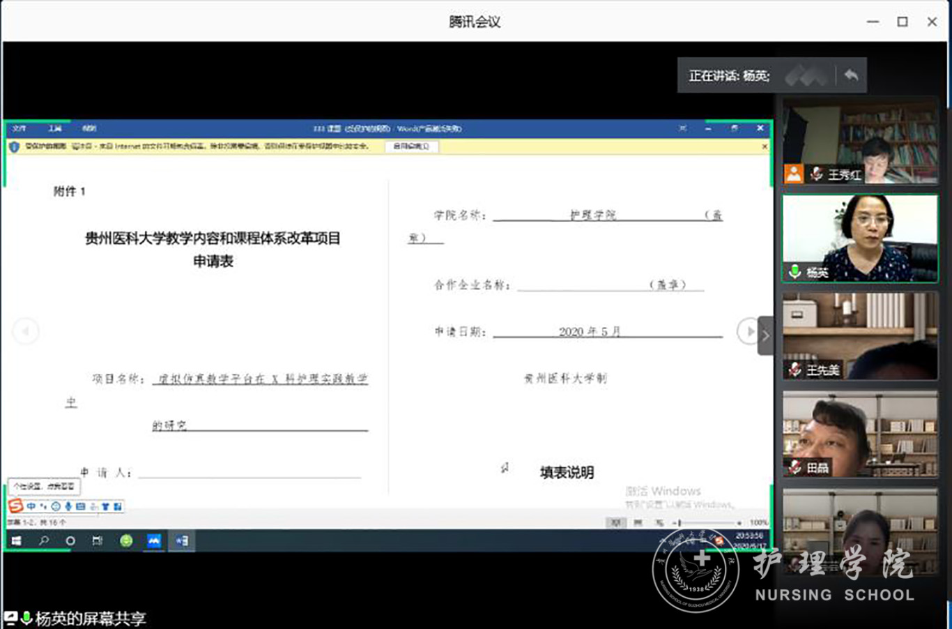 6月17日,1683168诸侯快讯官网通过腾讯会议举办了2019-2020学年第二学期护理沙龙活动——“课题申报书修改讨论会”,主要是针对前期收到的11份科研和教研申报书进行点评、修改和讨论,为下一步护理学科专项基金申报做准备。会议由1683168诸侯快讯官网党委副书记王秀红主持,全体专职教师参加了本次会议。1683168诸侯快讯官网党委书记杨英、副院长刘志燕、党委副书记王秀红三位领导担任评审专家,对提交的11份科研和教研课题申报书进行点评。三位专家分别从申报书的“立项依据”、“研究方案”、“研究基础”、“经费预算”、“如何进一步完善项目申报书”等方面做了全面细致而独特的点评和建议。最后,王秀红为本次沙龙活动做了总结,充分肯定了专职教师前期的辛苦付出,也希望老师们能够进一步打磨自己的标书,争取能在首次护理学科专项基金评审中脱颖而出。