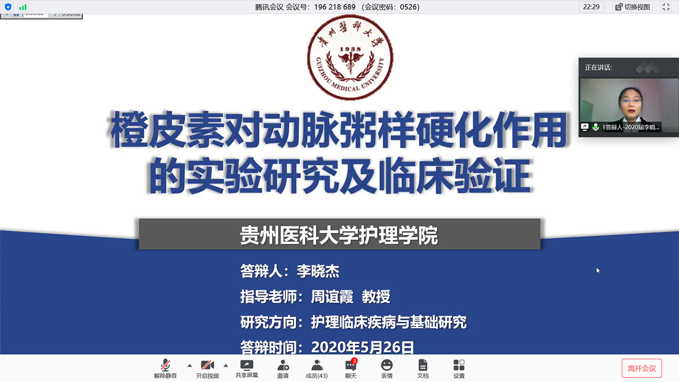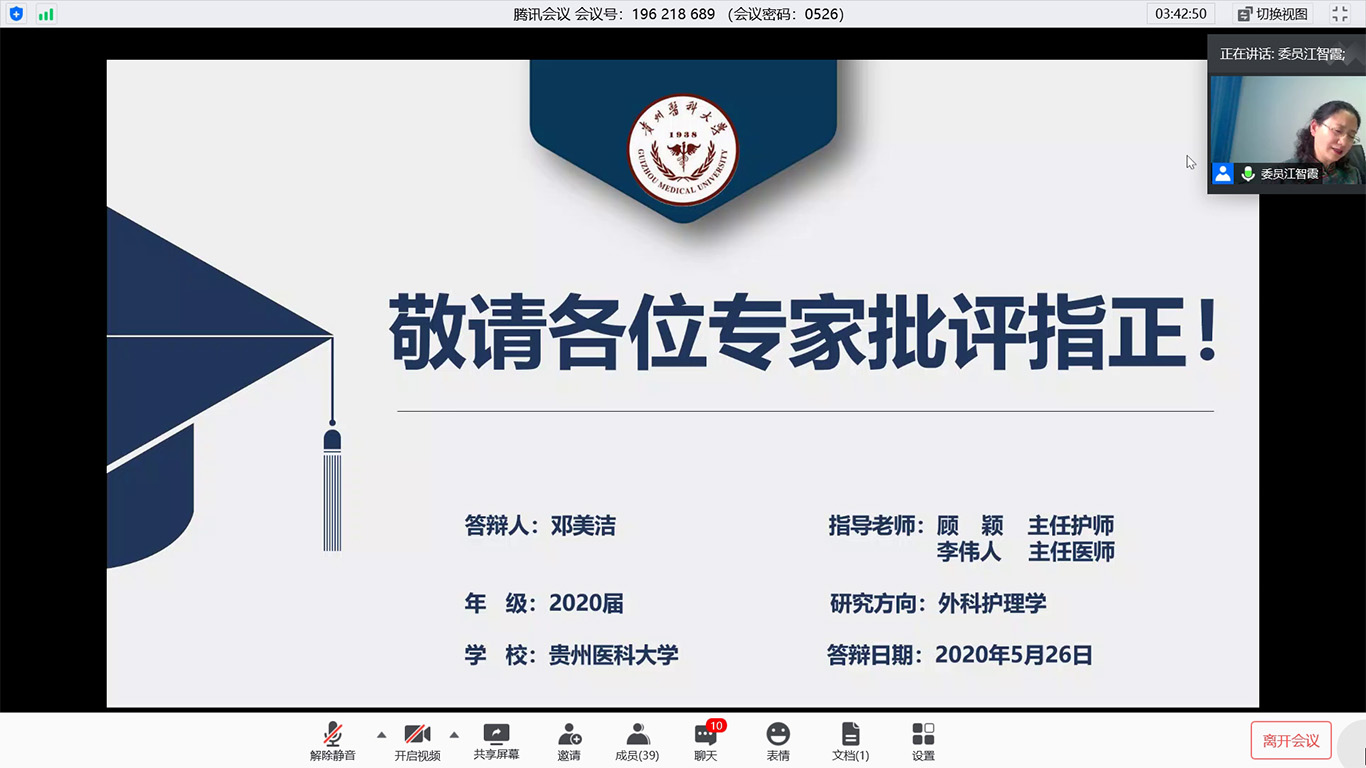 在疫情防控期间,为贯彻落实教育部《关于做好2020年上半年毕业研究生学位授予相关工作的通知》文件精神、贵州省以及学校疫情防控有关文件要求,做到管理不放松、质量不下降、毕业不延误,确保研究生培养顺利完成,1683168诸侯快讯官网于2020年5月26日通过腾讯会议平台进行了2020届硕士研究生学位论文答辩。