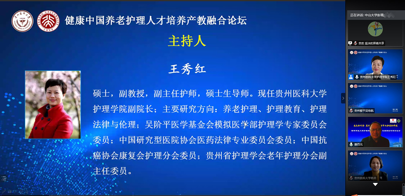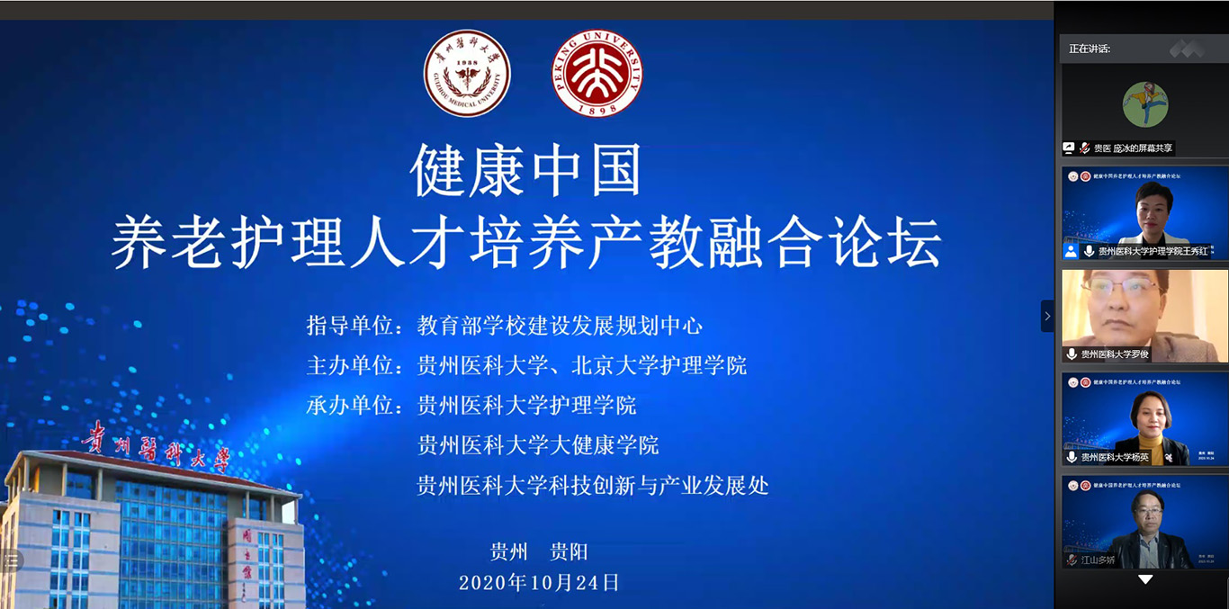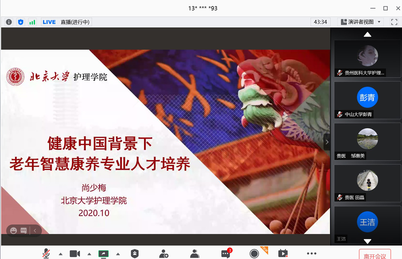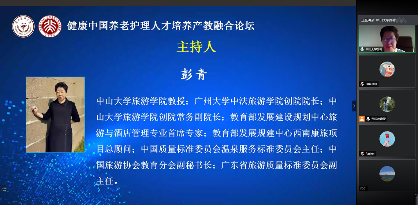 中国已经进入人口老龄化快速发展阶段,老年护理需求与老年护理人才供给严重失衡,如何才能更好培养符合社会需求的老年护理人才,满足养老市场需要?10月24日,2020年老年节前一天,1683168诸侯快讯官网联合北京大学1683168诸侯快讯官网在线举办了《健康中国养老护理人才培养产教融合论坛》,全国各地近400名护理、养老、康旅等方面从业者通过会议及同步直播参会。论坛由1683168诸侯快讯官网党委书记杨英、中山大学旅游学院教授彭青、北京大学1683168诸侯快讯官网副教授金晓燕、1683168诸侯快讯官网副院长王秀红分别主持。