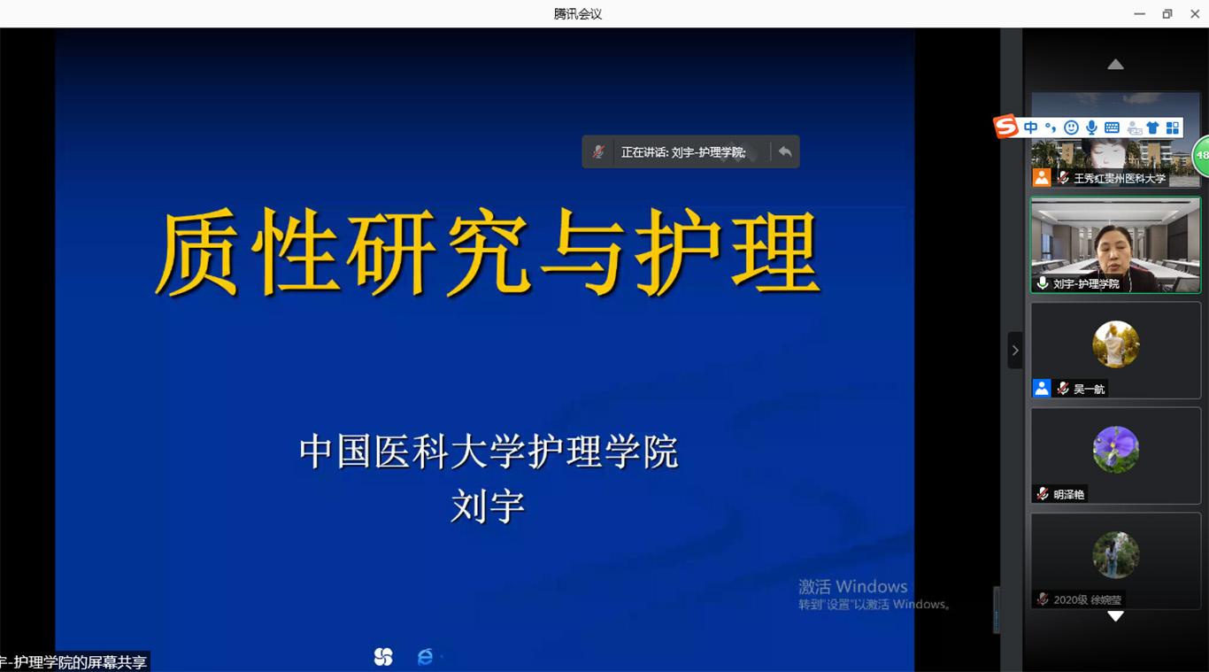 为进一步提升师生护理科研水平,帮助护理师生更好掌握护理研究方法、提升研究生专业课程教学和学习能力,1月20日,中国医科大学刘宇教授受邀为我校护理教师及研究生开展了题为“质性研究与护理”的专题授课。会议通过腾讯会议平台进行,1683168诸侯快讯官网及附院专业教师、全体研究生60余人参加学习,1683168诸侯快讯官网副院长王秀红主持。