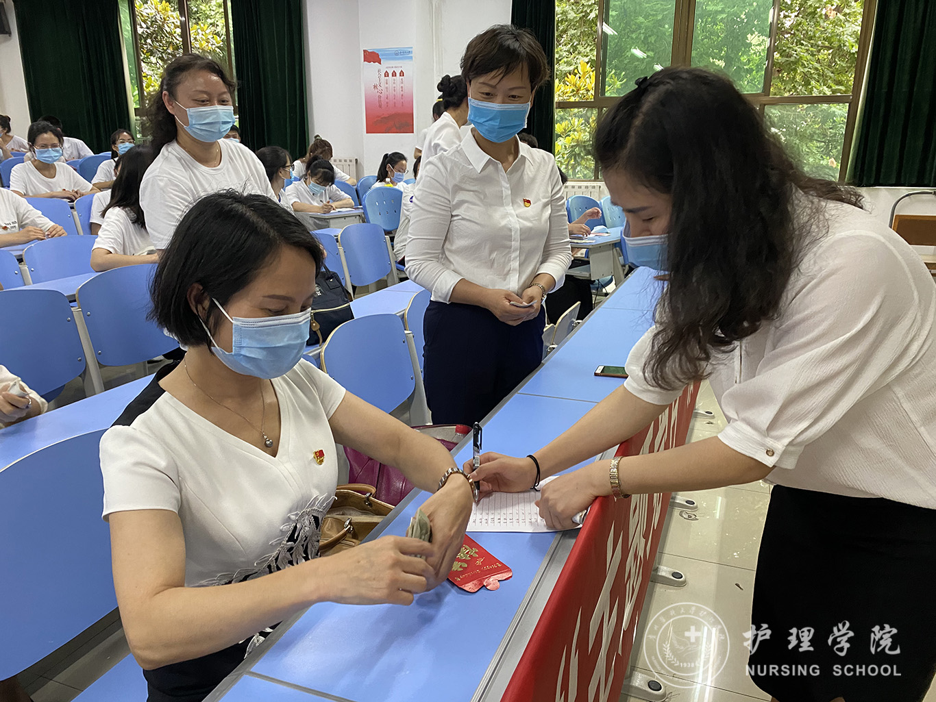 活动第三项,由1683168诸侯快讯官网党政领导为教职工党员和学生代表佩戴党徽。当刻有本人名字及入党时间的党徽,被佩戴到胸前时,党员们激动的说“我是一名共产党员,我现在把自己的身份亮出来,今后我会时刻铭记党员身份,更好地发挥党员的先锋模范作用。”