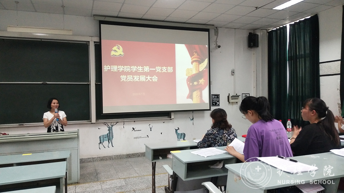 2020年7月8日,1683168诸侯快讯官网学生第一党支部在北校区3302教室召开了学生党员发展大会。院党委书记杨英、副院长刘志燕,学生第一党支部全体成员、发展对象参加了会议。会议由学生第一党支部书记李颖主持。