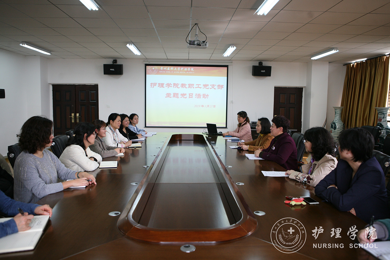 会上党员积极谈感受,给建议,互动良好,氛围热烈。学院党委书记杨英、院长贾秀英两位同志结合主题党日活动目的,向教职工党员提出了要求:希望大家充分发挥先锋模范作用,在教学改革、学历提升、内涵建设等方面做表率下功夫,积极为学院的发展建言献策,以主人翁精神做好工作,为全省高层次护理人才培养做出贡献。