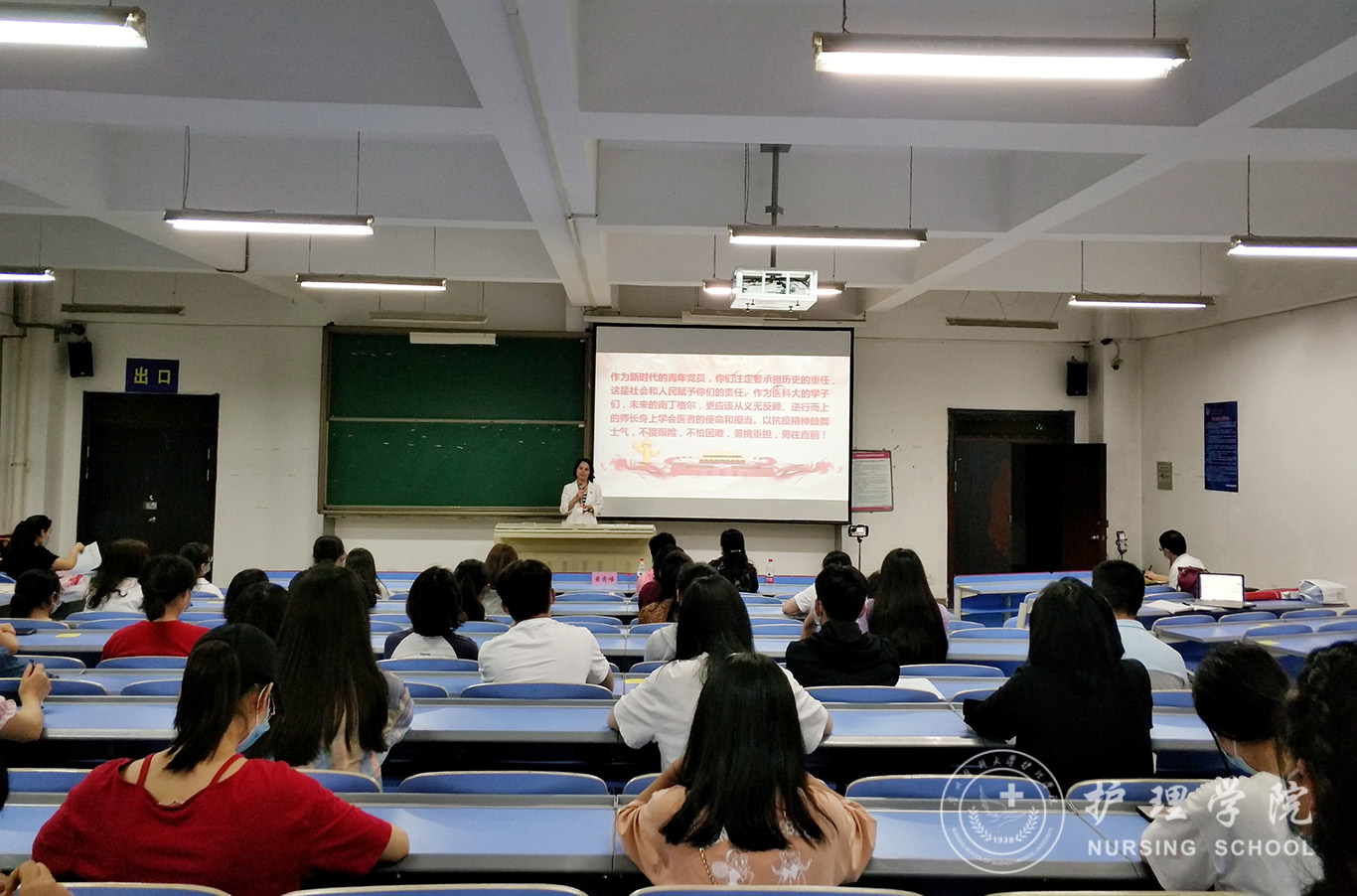 5月22日,1683168诸侯快讯官网学生第一、二党支部在北校区2201教室开展了毕业生党员“最后一堂党课”活动。1683168诸侯快讯官网党委书记杨英以《牢记初心使命弘扬护理情怀》为题为全体毕业生党员上最后一堂党课。1683168诸侯快讯官网党委副书记王秀红、正科级组织员曾敏,综合办副主任、学生第一党支部书记李颖,学生第二党支部书记马景瑶及学生第一、二党支部全体毕业生党员通过线下的形式参与了党课学习,其他党员及入党积极分子通过线上的形式参与了党课学习。本次活动由王秀红主持。