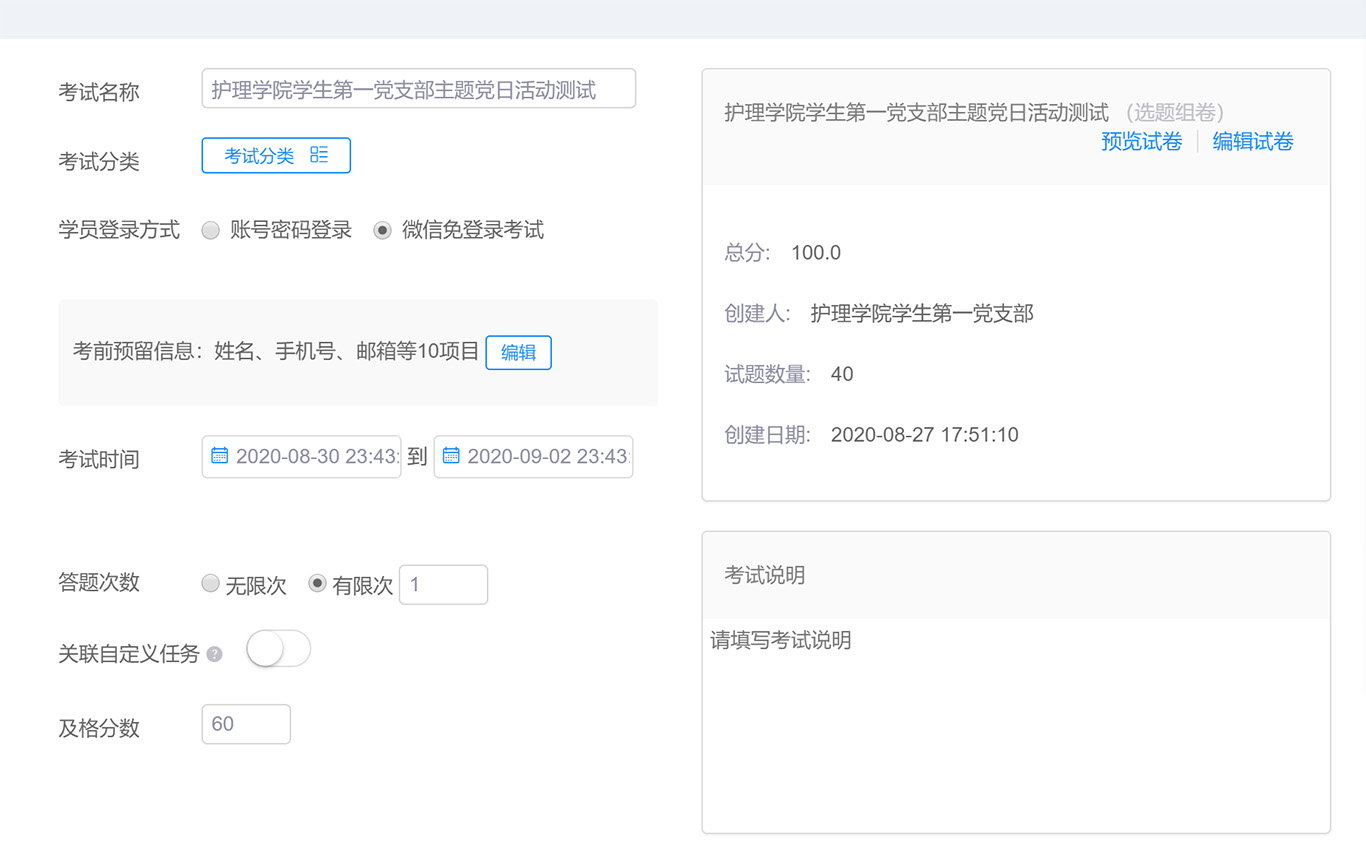 通过线上测试主题党日活动,进一步强化了全体党员对党史、新中国史等历史和知识的理解和掌握,增强了全体党员的党章党规党纪意识和责任意识。达到了学用结合、以考促学、以知促行的目的。