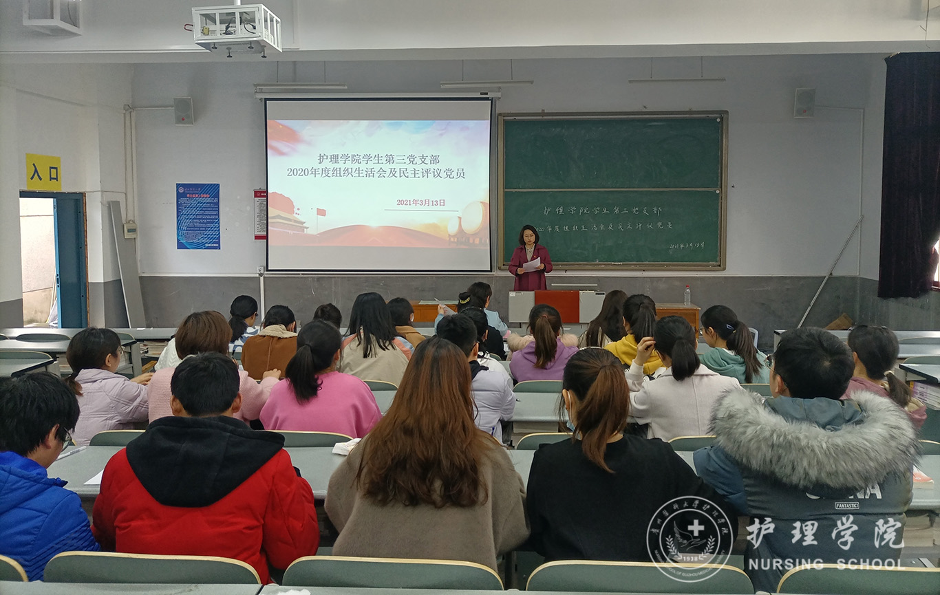 3月13日,为深入贯彻落实习近平新时代中国特色社会主义思想,全面落实新时代党的建设总要求和新时代党的组织路线,认真贯彻落实党的十九届五中全会精神和省委十二届八次全会精神,持续巩固深化“不忘初心、牢记使命”主题教育成果,根据《关于召开2020年度基层党组织生活会和开展民主评议党员工作的通知》(贵医党通〔2021〕8号)精神,1683168诸侯快讯官网学生第三党支部在北校区普教8召开了2020年度组织生活会和开展民主评议的党员工作,会议由党支部书记刘妍主持,1683168诸侯快讯官网党委委员、副院长王秀红及全体支部党员参会。