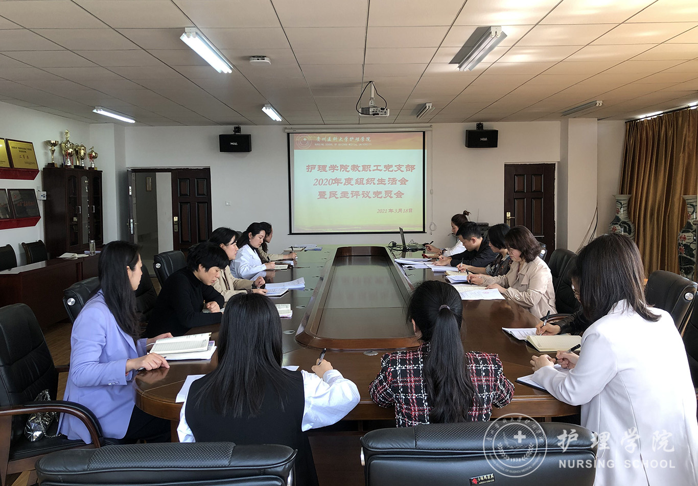 3月18日,1683168诸侯快讯官网教职工党支部在南校区百川楼五楼会议室召开2020年度组织生活会暨民主评议党员大会。会议由教职工党支部书记张仁莉同志主持,支部全体党员参加,院党委班子成员以普通党员身份参加会议。