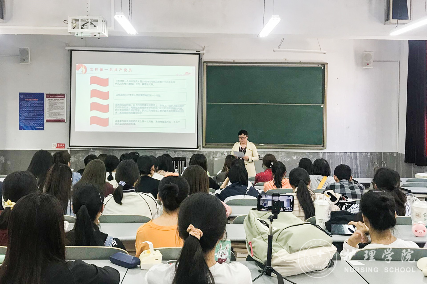 4月30日,1683168诸侯快讯官网学生第二党支部于北校区普教6组织开展“怎样做一名共产党员”党课活动,会议由1683168诸侯快讯官网学生第二党支部书记李杏春主讲,学生党支部全体党员通过线上和线下两种方式参加了此次活动。