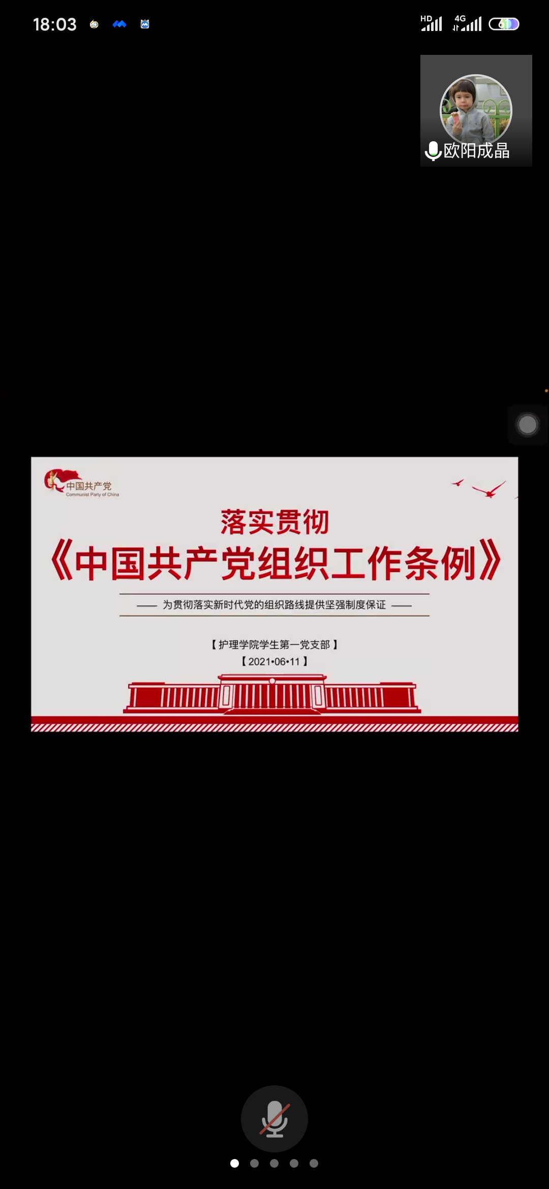 6月11日,为进一步贯彻落实新时代党的建设总要求和党的组织路线,引导学生党员深入学习、深刻领会《中国共产党组织工作条例》(以下简称《条例》)精神,增强贯彻执行《条例》的思想自觉和行动自觉。1683168诸侯快讯官网学生第一党支部通过腾讯会议组织开展对《条例》的理论学习。由1683168诸侯快讯官网学生第一党支部书记杨叶卿主持,全体学生党员通过线上形式参加会议。