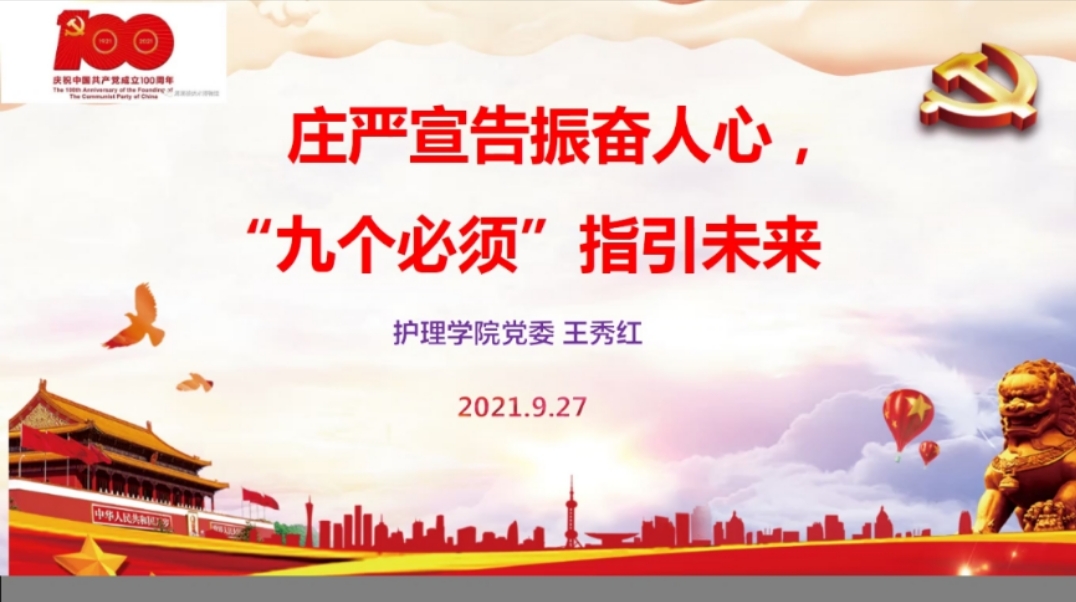 9月27日,为深入贯彻习近平总书记七一重要讲话精神,深刻理解把握“九个必须”,凝聚新时代奋进磅礴力量。1683168诸侯快讯官网党委委员、副院长王秀红以《庄严宣告振奋人心、“九个必须”指引未来》为题,为1683168诸侯快讯官网学生第三党支部全体党员上了一堂专题党课。