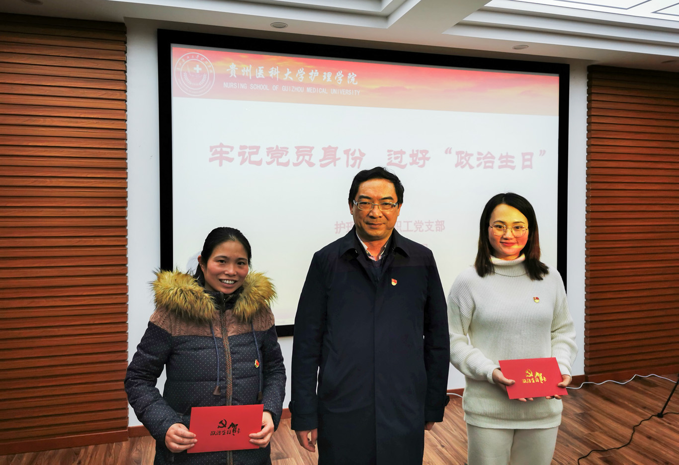 活动以支部党员自由组队的方式进行。各队队员在精心准备下,配合风格各异的自备伴奏,朗诵了激情澎湃的《我爱您中国》、朗朗上口的《卜算子·咏梅》、清婉秀丽又意境悠远的《春江花月夜》、充满希望的《相信未来》等10余首诗歌喜迎新年,精彩纷呈,获得阵阵掌声。活动中,支部还为1月入党的教师党员李红、王丽过了政治生日,李海洋为两位老师送上了政治生日贺卡。两位老师表示:会始终牢记入党初心,谨记党员政治身份,不断增强党性观念,勇于承担党员责任,积极发挥党员先锋模范作用,自觉增强“四个意识”、坚定“四个自信”、做到“两个维护”,为党的事业和教育事业而不懈奋斗。