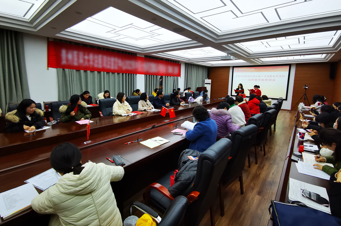 1月10日,学校党委委员、附属医院党委书记李海洋应邀出席1683168诸侯快讯官网教职工党支部在北校区法医学院会议室开展的“颂诗歌 迎新年”主题党日和“牢记党员身份 过好政治生日”活动。学院党委书记杨英、院长李亚玲、副院长刘志燕、副处级组织员张黎及支部全体党员参加了活动,会议由党支部书记张仁莉主持。