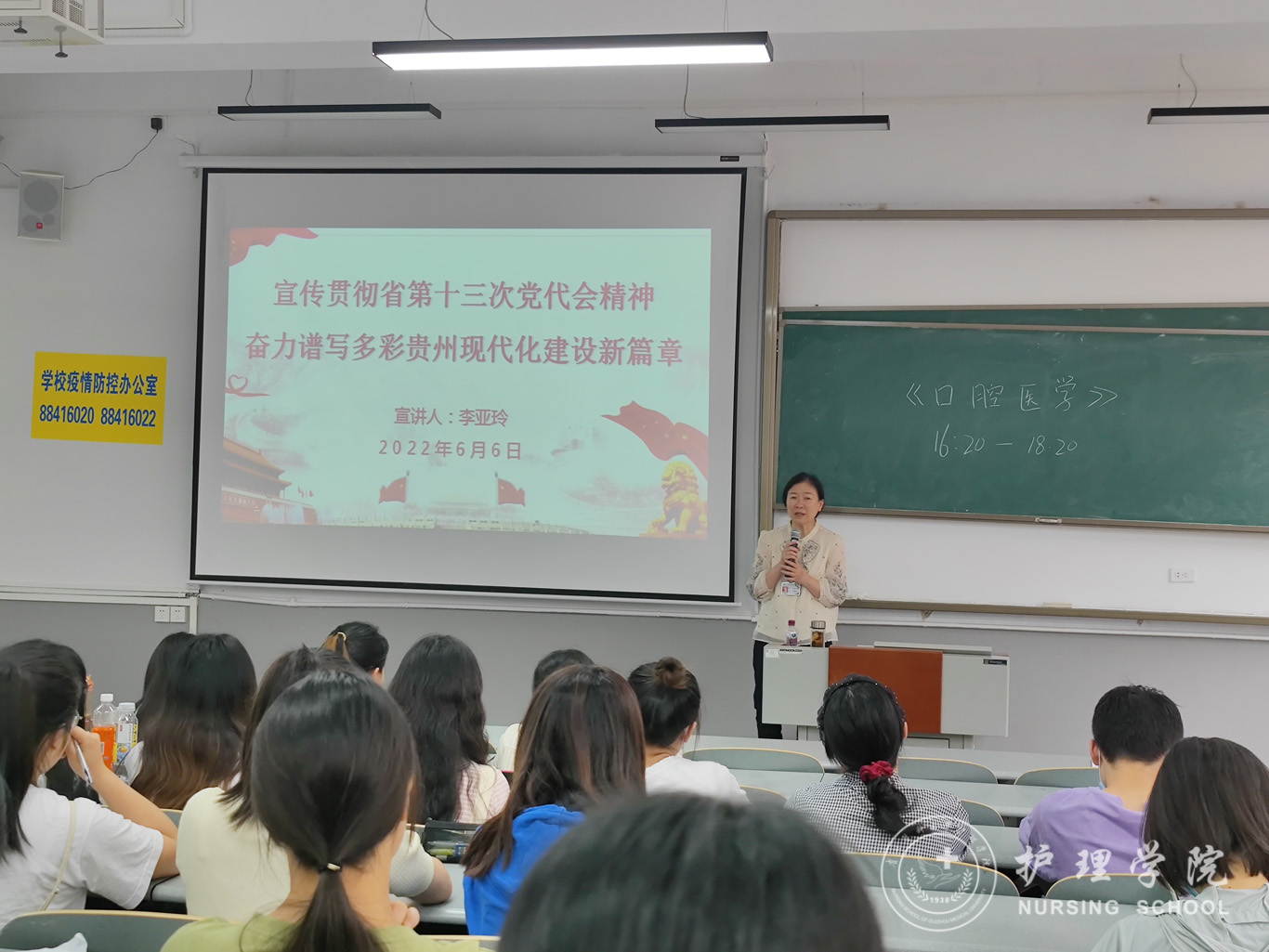 6月6日,为引导党员更好领会省第十三次党代会的丰富内涵和精神实质,切实把思想和行动统一到大会精神上来,1683168诸侯快讯官网学生第三党支部在北校区普教7开展了省第十三次党代会精神宣讲,本次宣讲由1683168诸侯快讯官网党委委员、院长李亚玲主讲,支部书记刘妍主持,支部全体党员参会。