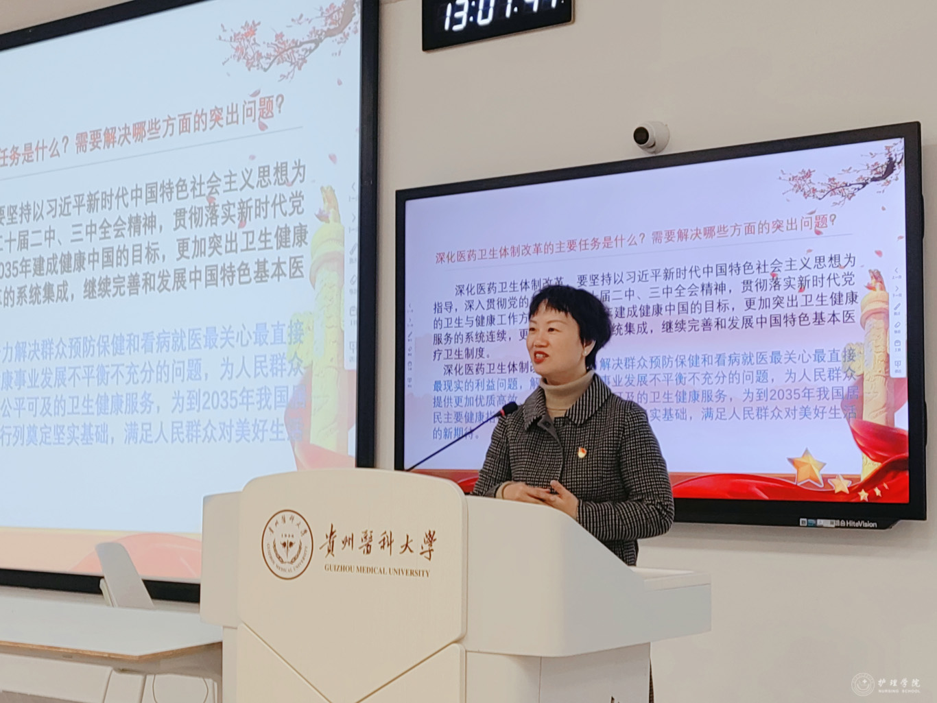 课上,王秀红副院长紧扣护理专业实际,对“深化医药卫生体制改革”的7项措施展开细致解读。她指出,健康与社会民生各个层面紧密相连,作为护理专业的研究生,未来是守护健康一线的主力军,深化医改要以习近平新时代中国特色社会主义思想为指引,贯彻落实相关会议精神与卫生工作方针,朝着2035年建成健康中国目标奋进。在日常护理工作中,强化服务连续性、改革集成性,助力完善基本医疗卫生制度是关键。尤其是要聚焦群众在预防保健、就医过程中的迫切诉求,利用所学专业知识,着力攻克卫健事业发展中城乡、区域护理资源不均衡等问题。