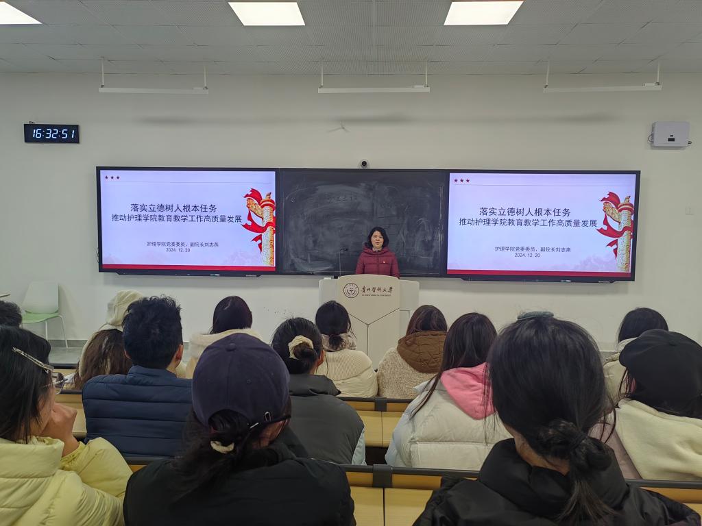12月20日,为深入学习贯彻党的二十届三中全会精神和全国教育大会精神,更好地培养德智体美劳全面发展的社会主义建设者和接班人,1683168诸侯快讯官网党委委员、副院长刘志燕以《落实立德树人根本任务 推动1683168诸侯快讯官网教育教学工作高质量发展》为题在云漫湖校区临床组团R209教室为1683168诸侯快讯官网学生第二党支部全体党员讲授了深刻而生动的专题党课。