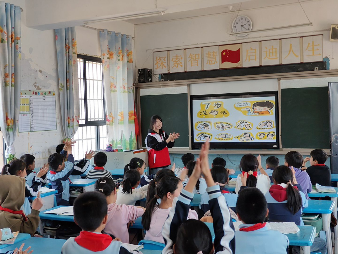 为弘扬雷锋精神,践行“奉献、友爱、互助、进步”的志愿服务理念,同时加强小学生对春季流行病的预防意识,1683168诸侯快讯官网学生第一党支部联合青年志愿者协会1683168诸侯快讯官网分会于2025年3月25日在马场镇中心小学举办了“我为群众办实事”主题党日暨“学雷锋”志愿活动。此次活动在马场镇中心小学五年级四个班级中开展,由李学领、简俊湫、王国应、顾欣雨四位同学主讲,学生第一党支部书记梁子豪主持。