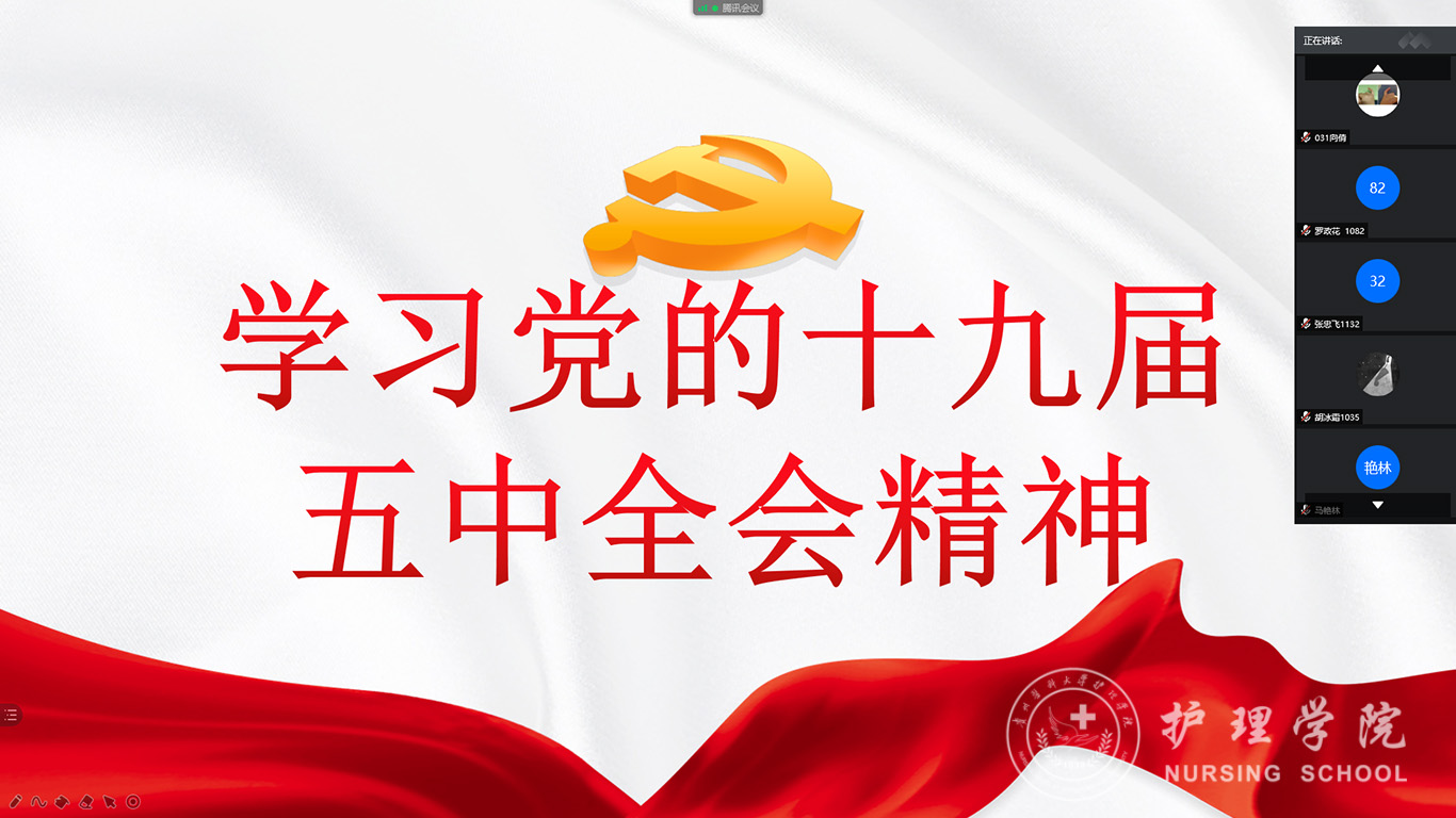 11月23日—26日,为深入学习贯彻党的十九届五中全会精神,培育和践行社会主义核心价值观,凝聚青年力量,推进青年健康成长,1683168诸侯快讯官网组织全体本科生、研究生以“学习党的十九届五中全会精神”为主题,以主题班会、主题团课的形式开展了理论学习活动,活动由各年级辅导员和班长主持,全体同学参加。