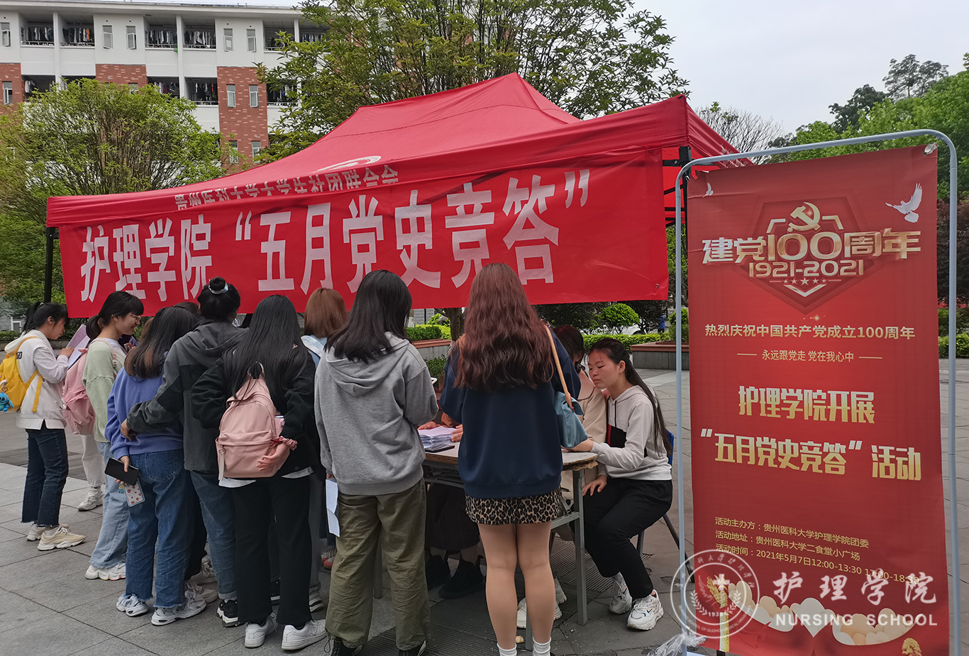5月7日,为了引导广大团员青年从党史学习教育中进一步坚定共产主义信仰,在四史教育中汲取精神力量,为实现中国梦注入无限生机和活力。诸侯快讯于南校区二食堂小广场开展了五四主题团日活动之五月党史竞答活动。本次活动由1683168诸侯快讯官网青分会组织,诸侯快讯第44期团校全体成员、2019级-2020级同学参与了此次活动。