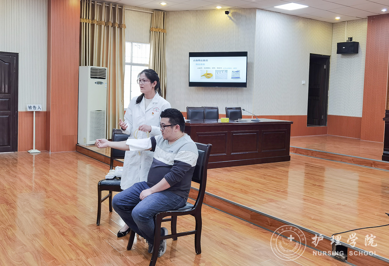 本次培训主讲为外科护理学教研室卢海霞和马丽老师。两位老师分别以理论讲授、演示教学、实践操作等环节,生动、直观地讲解了“止血包扎术”“心肺复苏技术”“噎呛急救”等基本救护方法和技巧。培训现场气氛活跃,学员积极参与,老师细心指导,取得了良好的培训效果。