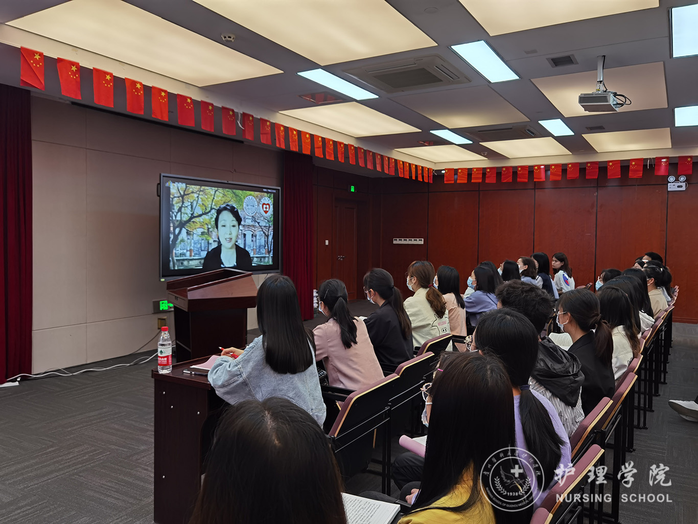在前期紧密的沟通商定及悉心准备下,5月20日下午,苏州大学1683168诸侯快讯官网与1683168诸侯快讯官网《老年护理学》同步共享课堂依托智慧树平台的支持得以顺利完成。此次课程由苏州大学侯云英副教授就“老年健康保健与养老照顾”为主题,苏州大学1683168诸侯快讯官网2017级33名同学和1683168诸侯快讯官网2018级75名同学参加学习。讲授开始前苏州大学1683168诸侯快讯官网院长李惠玲教授简短致辞,表达了对1683168诸侯快讯官网师生的问候,她说:作为对口帮扶的“姊妹学院”,苏州大学1683168诸侯快讯官网有责任和义务与1683168诸侯快讯官网一起合作共建。在前期友好往来基础上,此次苏大1683168诸侯快讯官网将八门课程与贵医大1683168诸侯快讯官网共享,并先期选取苏大的精品课程《老年护理学》借助智慧树平台的支持与贵医大1683168诸侯快讯官网开展同步共享,旨在将苏大的教学原汁原味的分享给贵医大的师生,促进两校师生之间的交流,帮助同学们相互沟通学习。