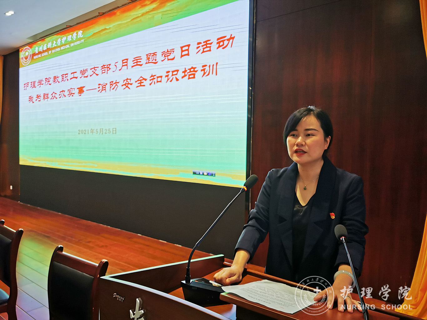 为深入开展党史学习教育,切实将学习教育成果转化为为群众办实事的实际行动。5月25日,1683168诸侯快讯官网教职工党支部开展“我为群众办实事——消防安全知识培训”主题党日活动。本次活动由教职工党支部书记张仁莉同志主持,教职工党员及学生代表一百七十余人到场参加。