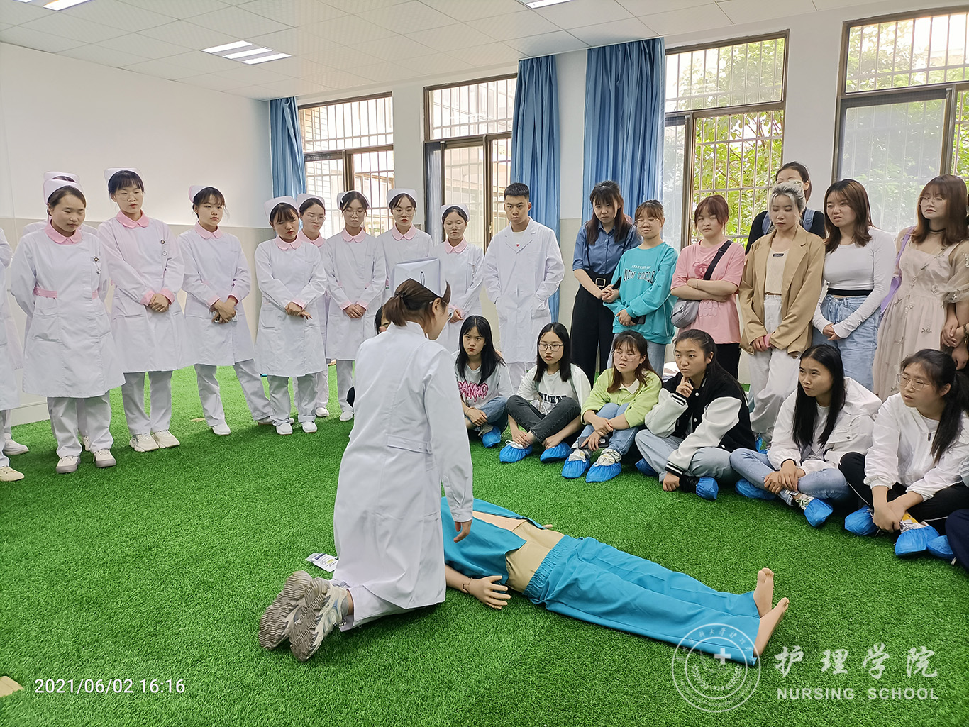 6月3日,为深入开展党史学习教育,切实将学习教育成果转化为为群众办实事的实际行动,让非医学专业的学生能掌握基础的急救医学知识。1683168诸侯快讯官网学生第三党支部在百川楼1101教室、外科模拟实验室为医药卫生管理学院2020级全体同学进行了院前CPR、海姆立克法急救知识培训。活动由学生第三党支部支部书记刘妍主持,支部党员及护理技能协会成员主讲,医药卫生管理学院2020级全体同学参与培训。