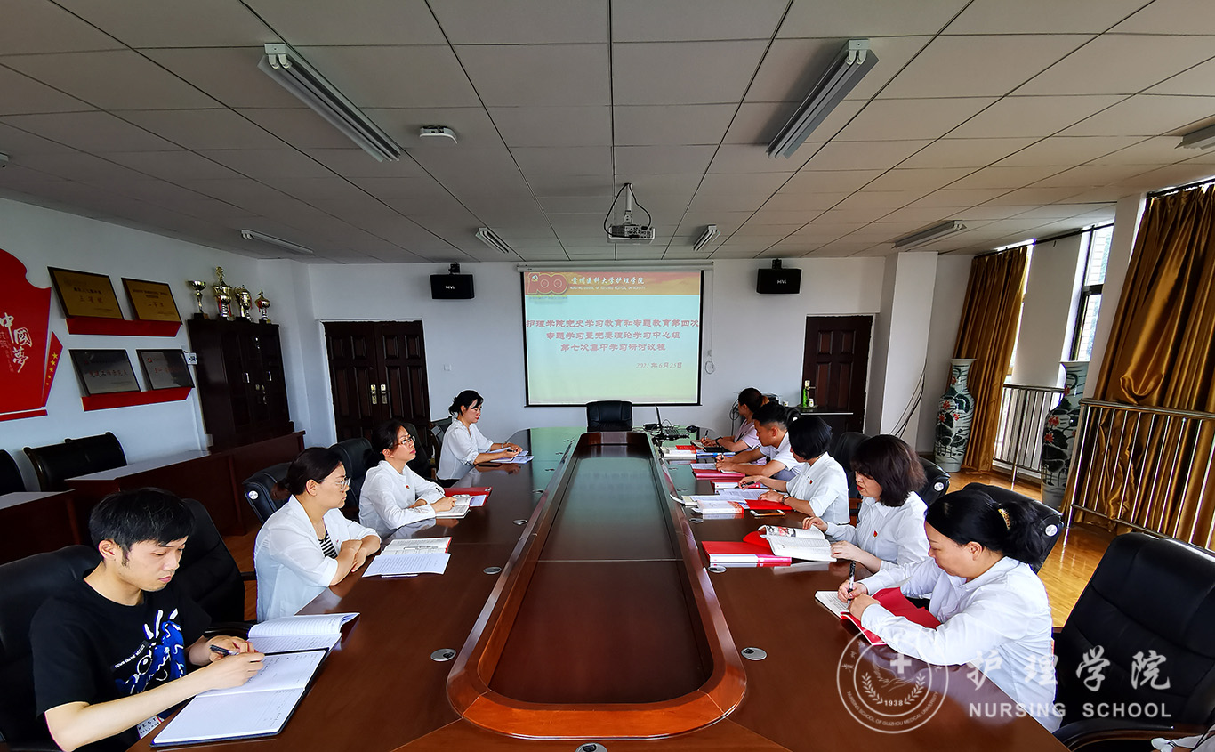 6月25日,1683168诸侯快讯官网在南校区百川楼五楼会议室召开党史学习教育第四次专题学习暨党委理论学习中心组第七次集中学习研讨。全体党员参加学习。会议由学院党委书记杨英主持。