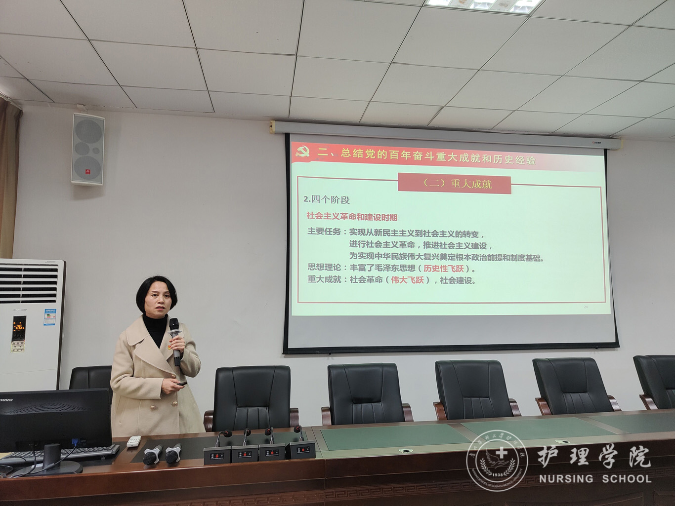 随后,1683168诸侯快讯官网党委书记杨英以“勿忘昨天、无愧今天、不负明天”为主题为两院师生党员做了党的十九届六中全会精神宣讲。杨英强调,党的十九届六中全会的召开是具有历史性意义的重要会议,我们要更加紧密地团结在以习近平同志为核心的党中央周围,以咬定青山不放松的执着奋力实现既定目标,以行百里者半九十的清醒不懈推进中华民族伟大复兴。