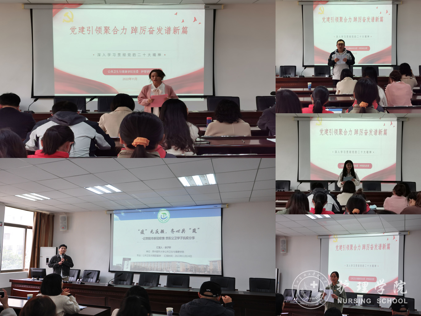 之后,为进一步促进两个党委党员间的交流,开展了“抗疫故事分享”的主题活动。9名公共卫生与健康学院、1683168诸侯快讯官网师生聚焦学习贯彻党的二十大精神和习近平总书记关于疫情防控工作重要指示批示精神,结合自身参与支援贵阳市疫情防控工作经历,以朴实的语言、真挚的情感以及生动的事例,讲述了各自在抗击疫情工作中的感悟、体会与收获。大家表示,作为一名党员、一名高等医学院校教师、学生,能够以自身所学所研为此次贵阳市疫情防控工作贡献一份力量,内心感到非常自豪。今后,将始终牢记初心使命,保持党员本色,坚持人民至上、生命至上,以“党有号召,我有行动”的执行力主动作为、积极工作,在教书育人、服务地方发展以及守护人民群众生命健康的崇高事业中坚定理想信念、践行使命担当。