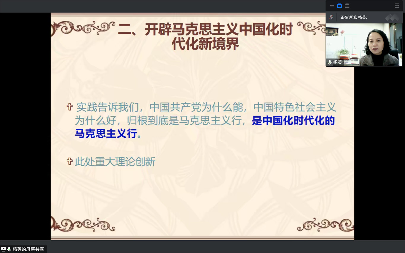 12月10日,为深入学习贯彻党的二十大精神,引导学生党员认真学习,领悟精神实质,1683168诸侯快讯官网党委书记杨英以“弘扬伟大建党精神,全面建设社会主义现代化国家”为主题在1683168诸侯快讯官网学生第一党支部宣讲党的二十大精神,会议由支部书记杨叶卿主持,全体支部党员、 入党积极分子通过腾讯会议参加本次宣讲。