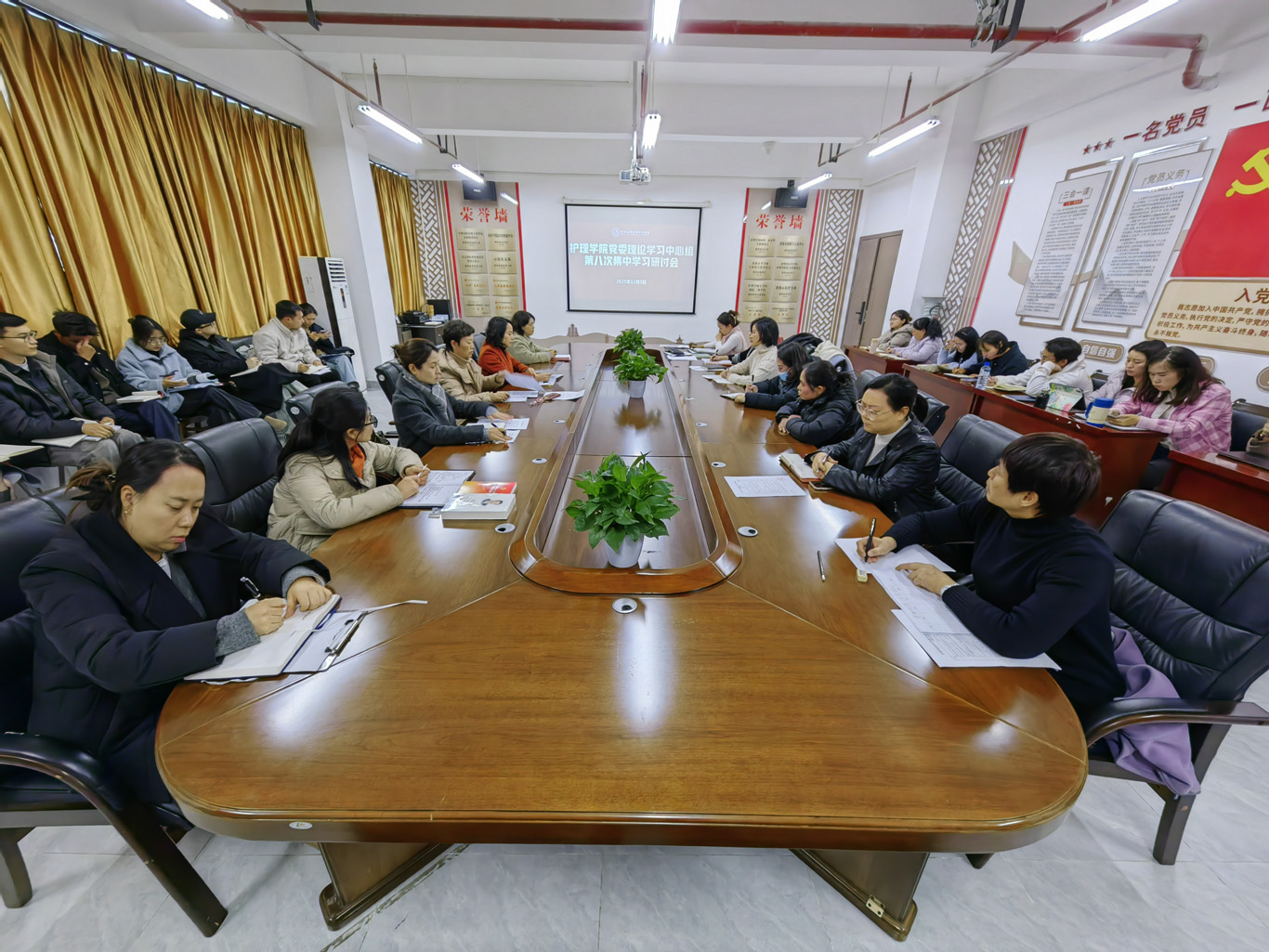 12月3日下午,1683168诸侯快讯官网在云漫湖校区酬勤楼六楼会议室召开了党委理论学习中心组第八次集中学习研讨会,学院党委领导班子成员、副科级以上干部、党支部书记和全体辅导员参会,会议由学院党委书记杨英主持。